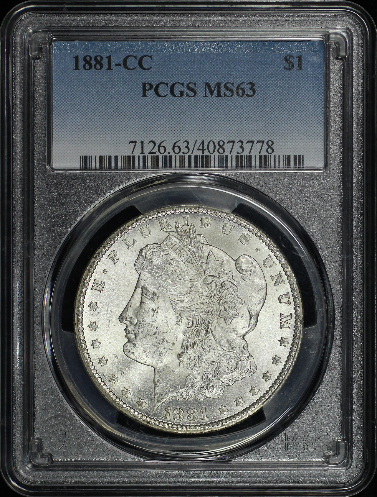 1881-CC Morgan Dollar PCGS MS-63 designed by George T. Morgan.