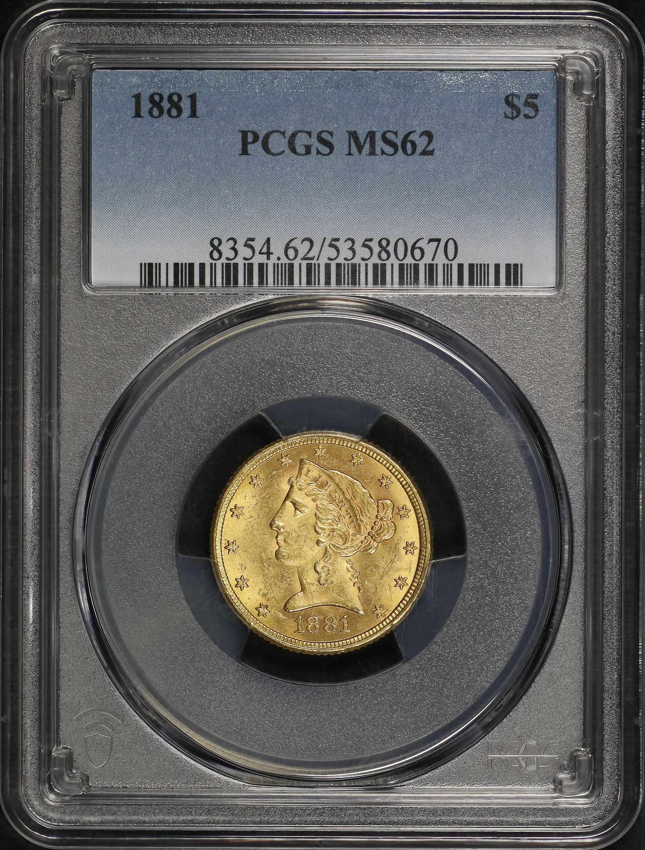 1881 Liberty Head $5 PCGS MS-62 designed by Christian Gobrecht.