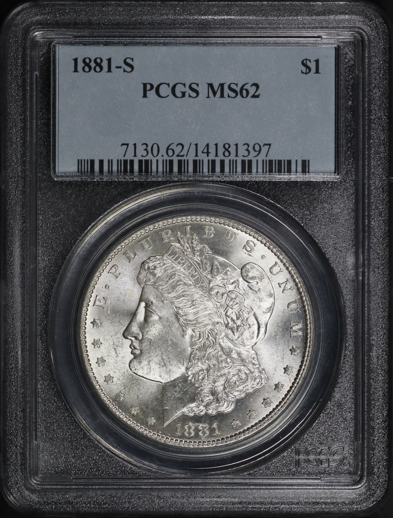 1881-S Morgan Dollar PCGS MS-62 designed by George T. Morgan.