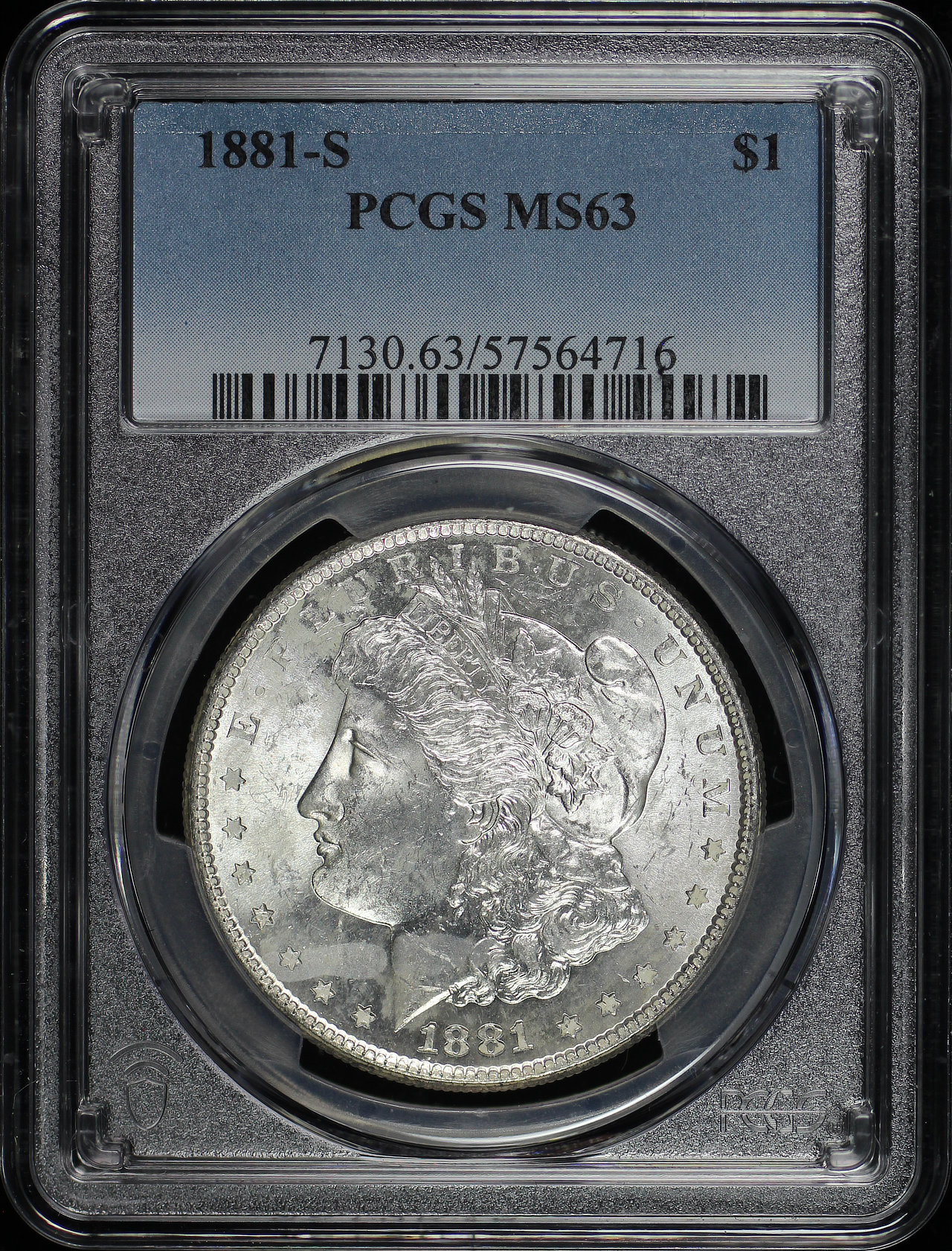 1881-S Morgan Dollar PCGS MS-63 designed by George T. Morgan.