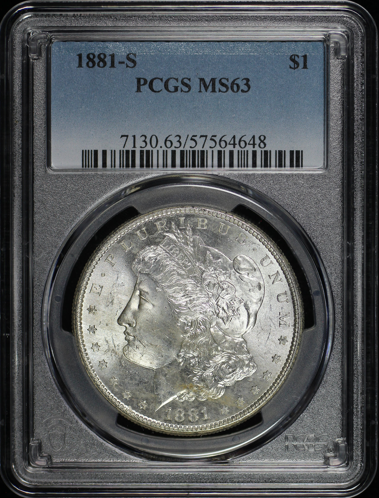 1881-S Morgan Dollar PCGS MS-63 designed by George T. Morgan.