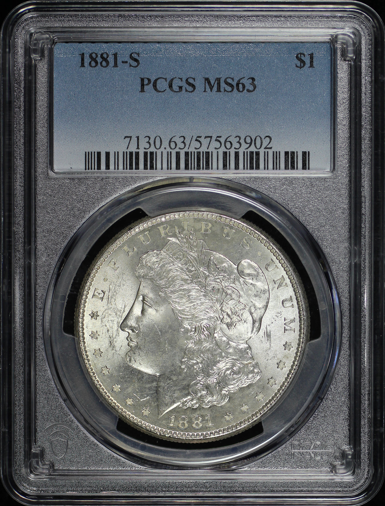 1881-S Morgan Dollar PCGS MS-63 designed by George T. Morgan.