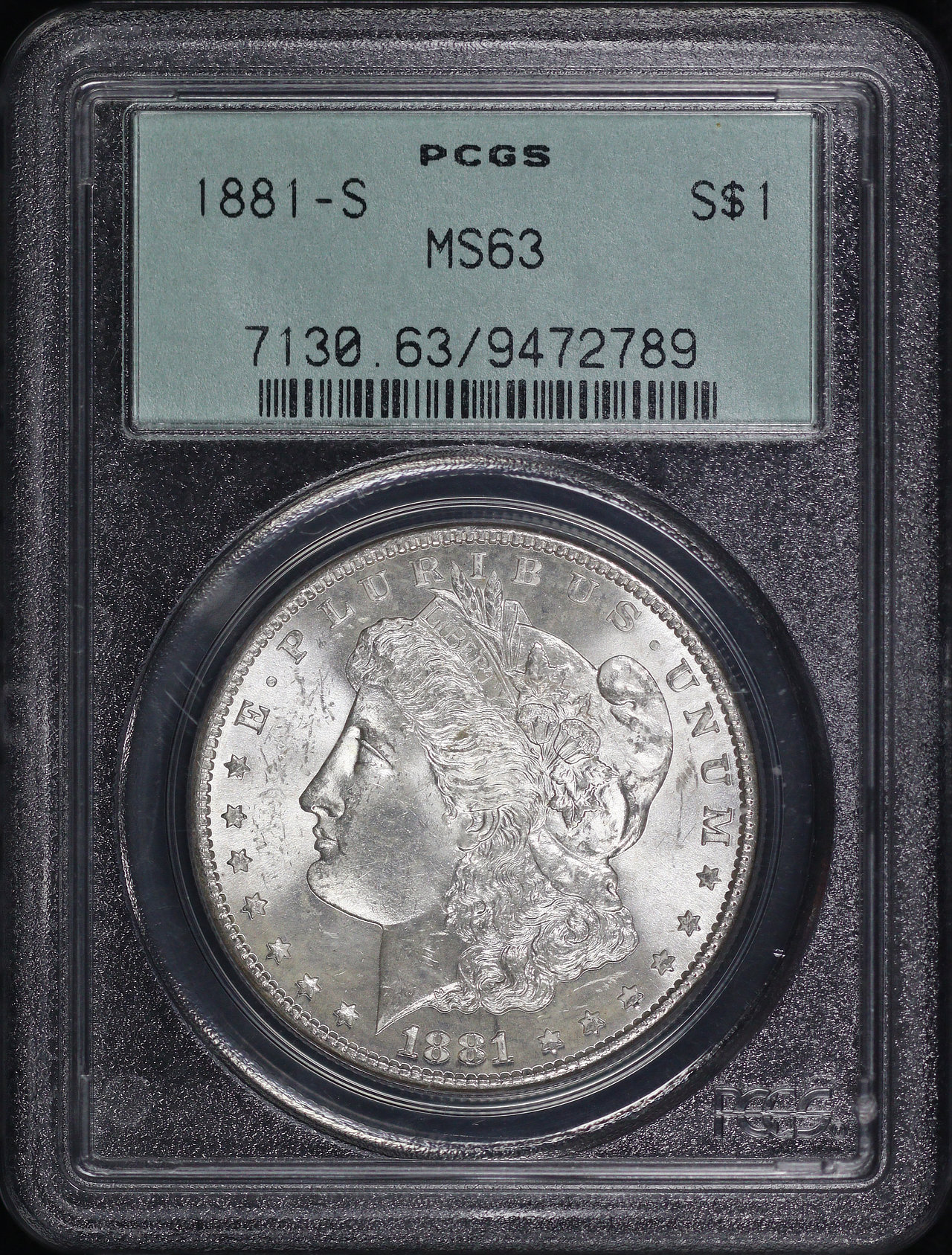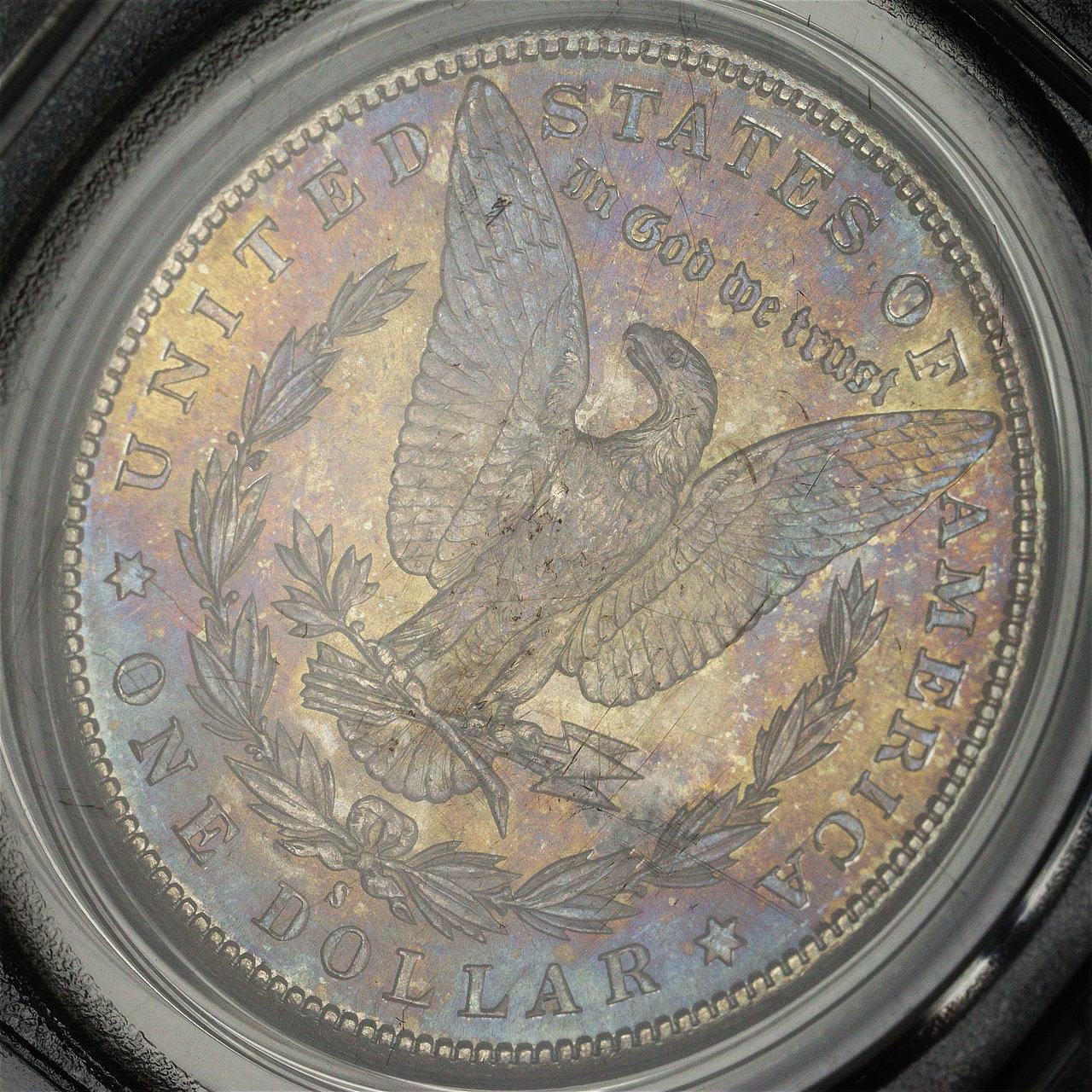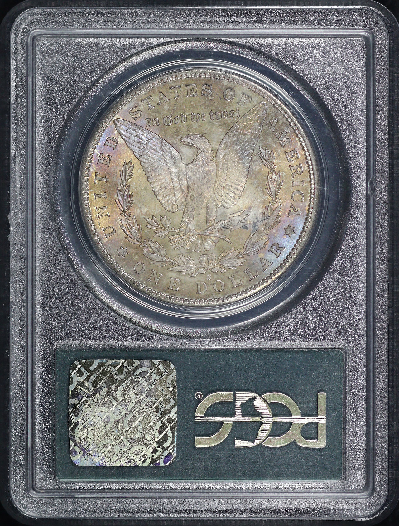 1881-S Morgan Dollar PCGS MS-63 Old Green Holder, Smoky Blue & Sunset Hue Reverse Toning