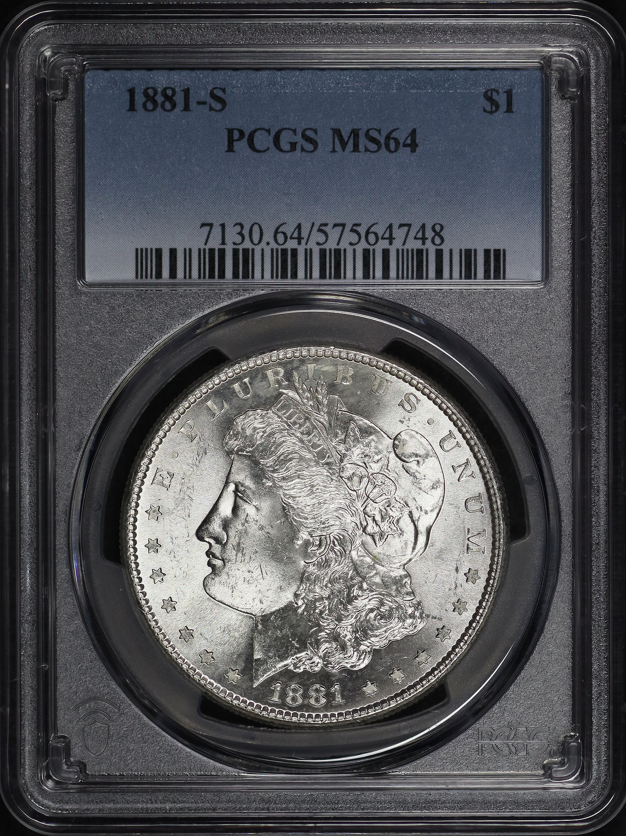 1881-S Morgan Dollar PCGS MS-64 designed by George T. Morgan.