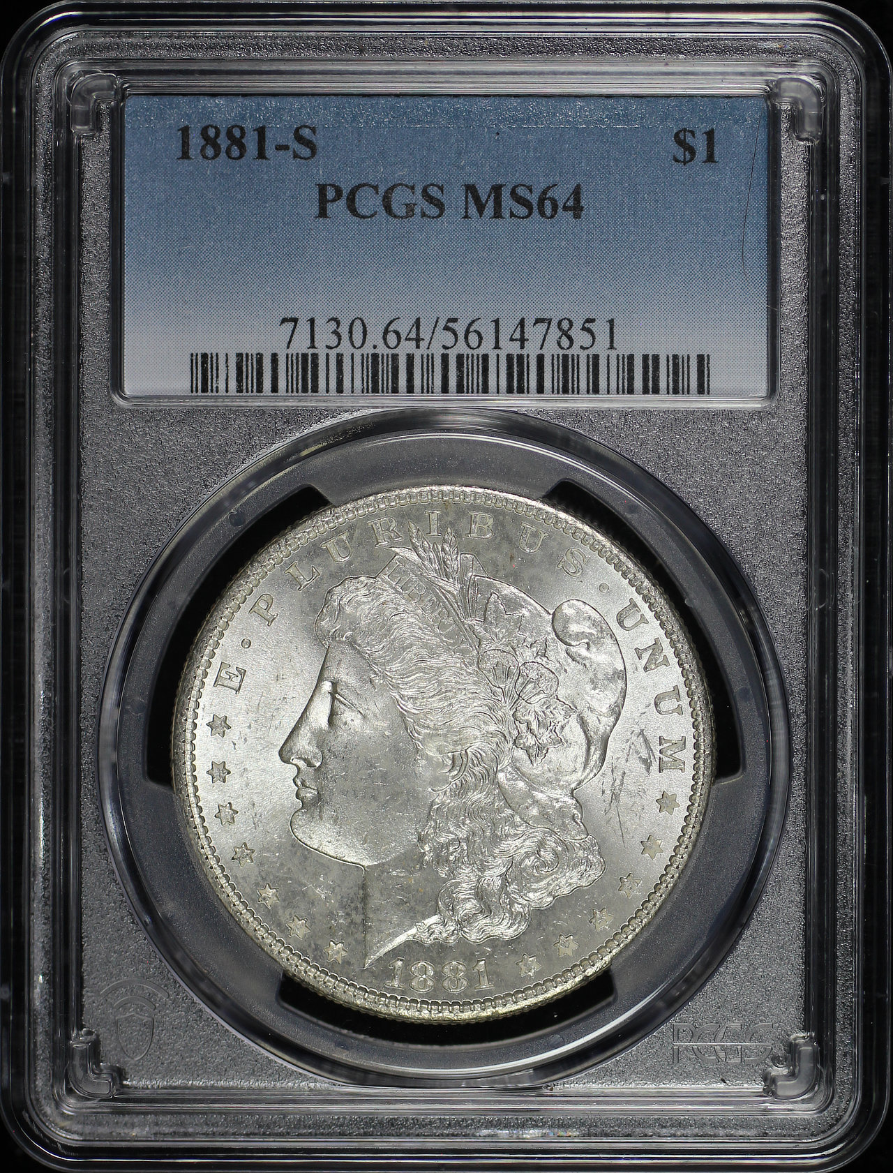 1881-S Morgan Dollar PCGS MS-64 designed by George T. Morgan.