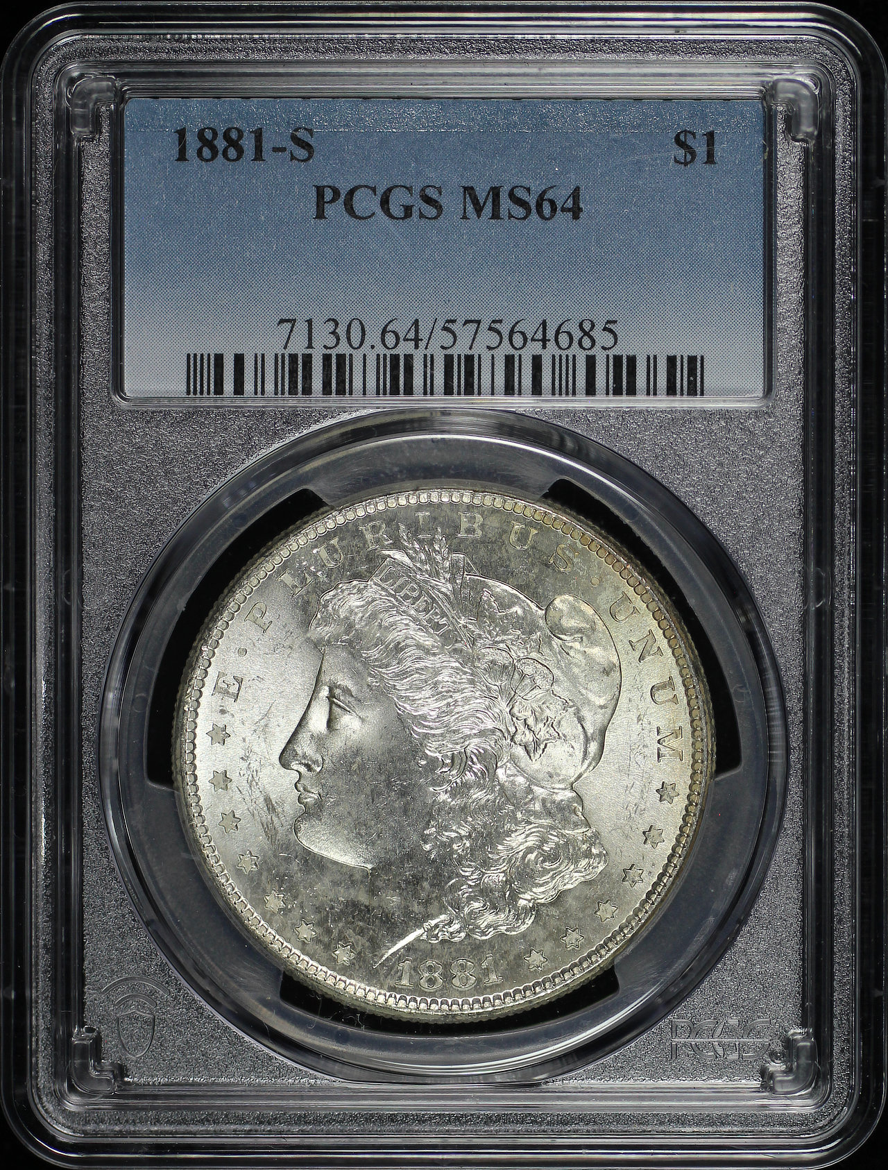 1881-S Morgan Dollar PCGS MS-64 designed by George T. Morgan.
