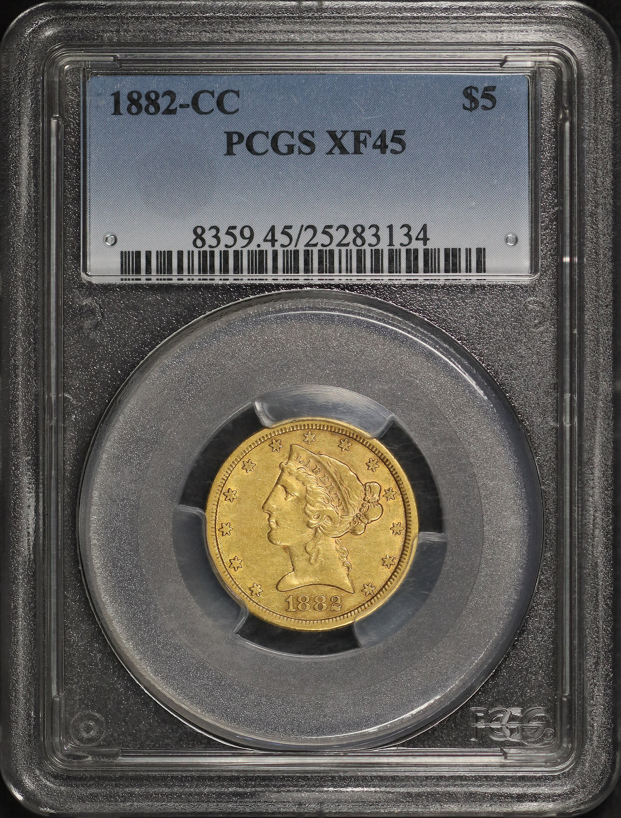 1882-CC Liberty Head $5 PCGS XF-45 designed by Christian Gobrecht.