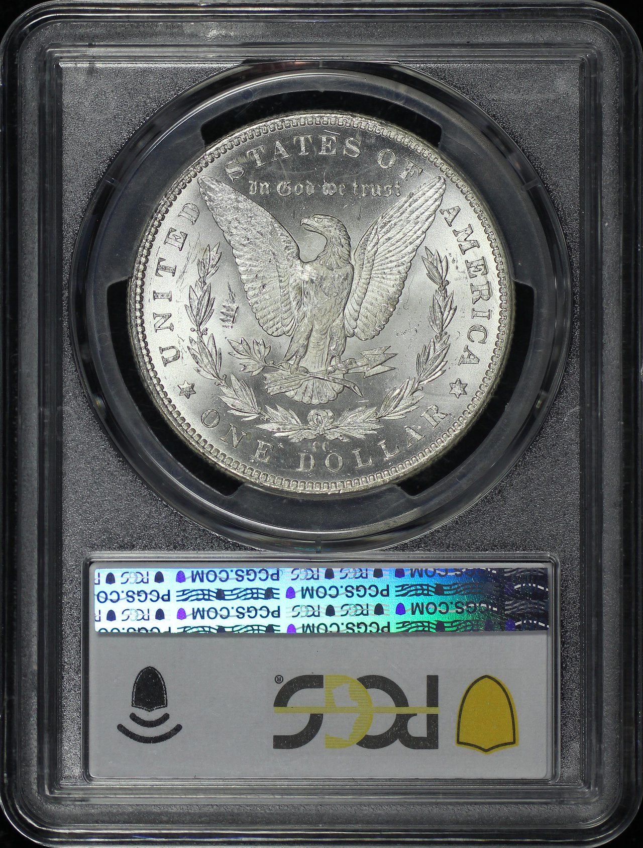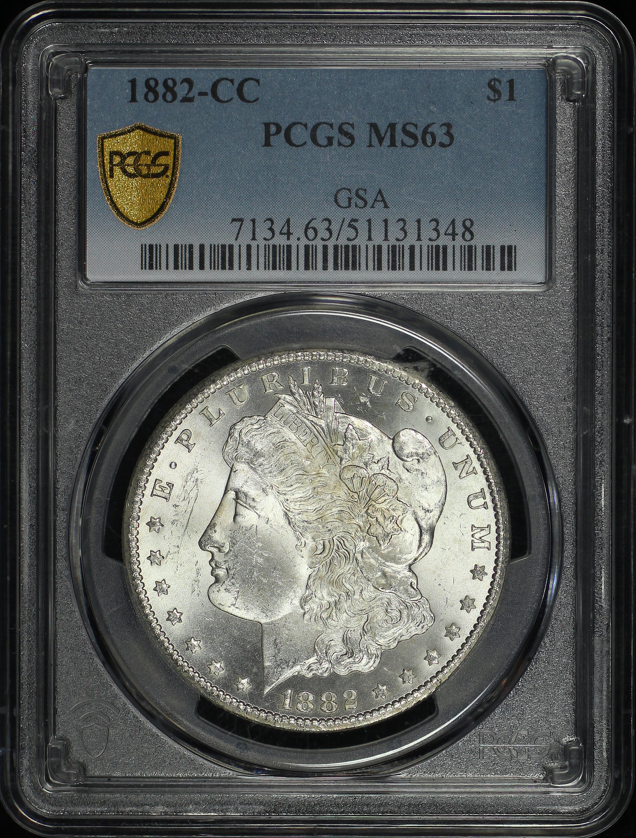 1882-CC Morgan Dollar GSA Label PCGS MS-63 designed by George T. Morgan.