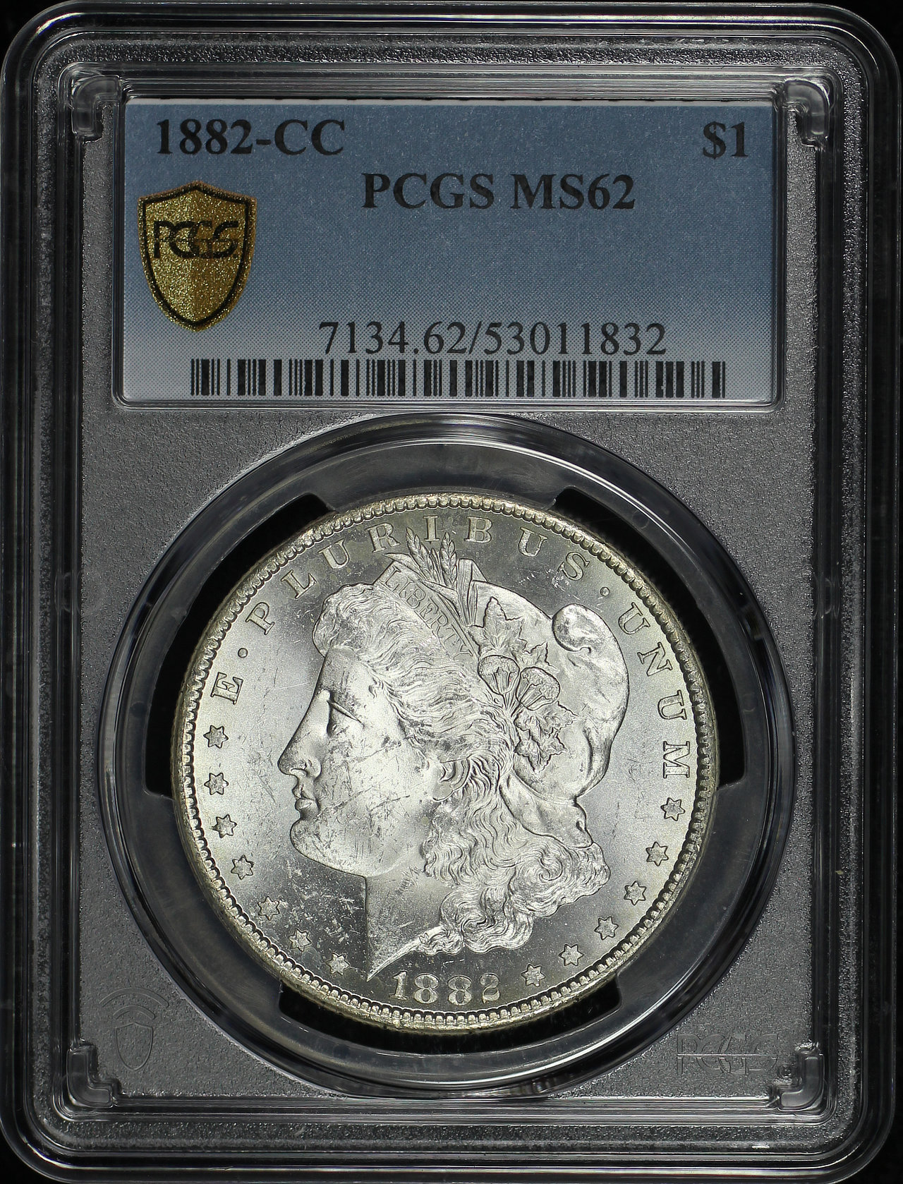 1882-CC Morgan Dollar PCGS MS-62 designed by George T. Morgan.