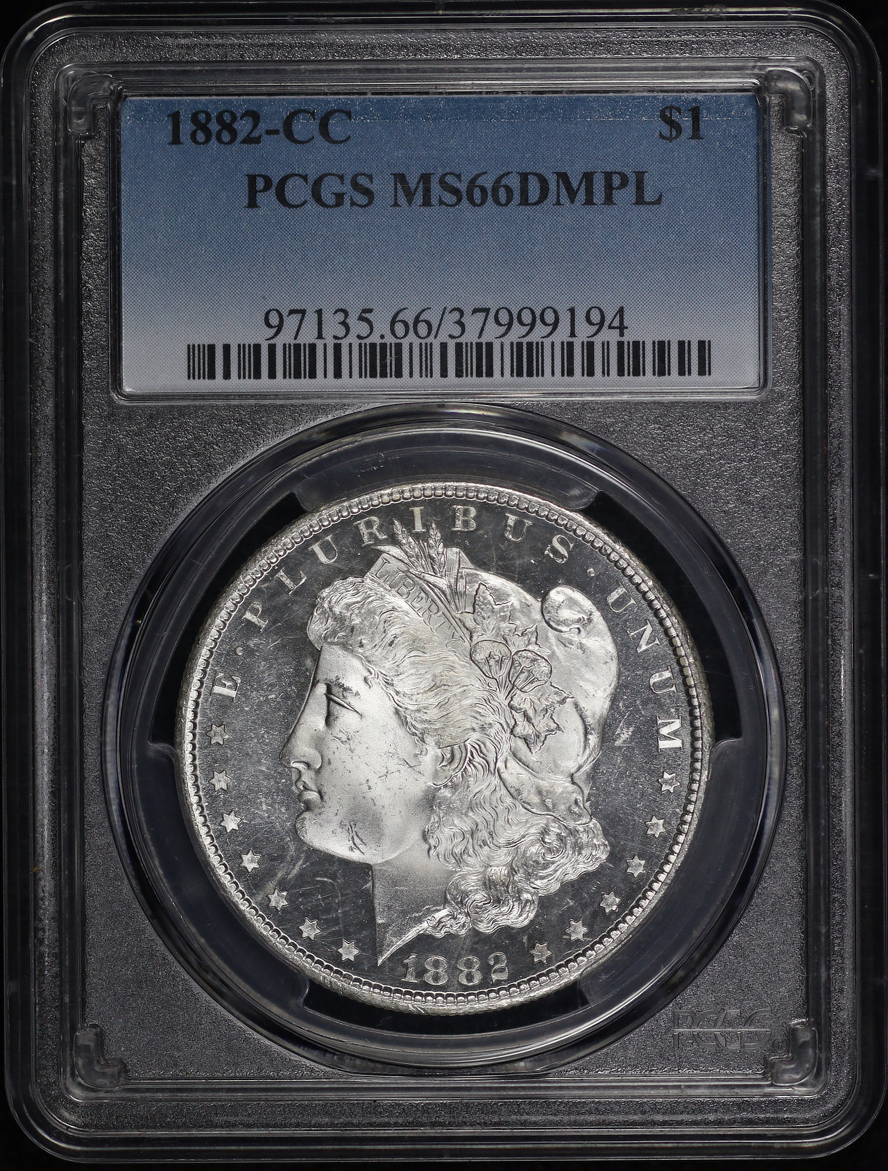1882-CC Morgan Dollar PCGS MS-66 DMPL designed by George T. Morgan.
