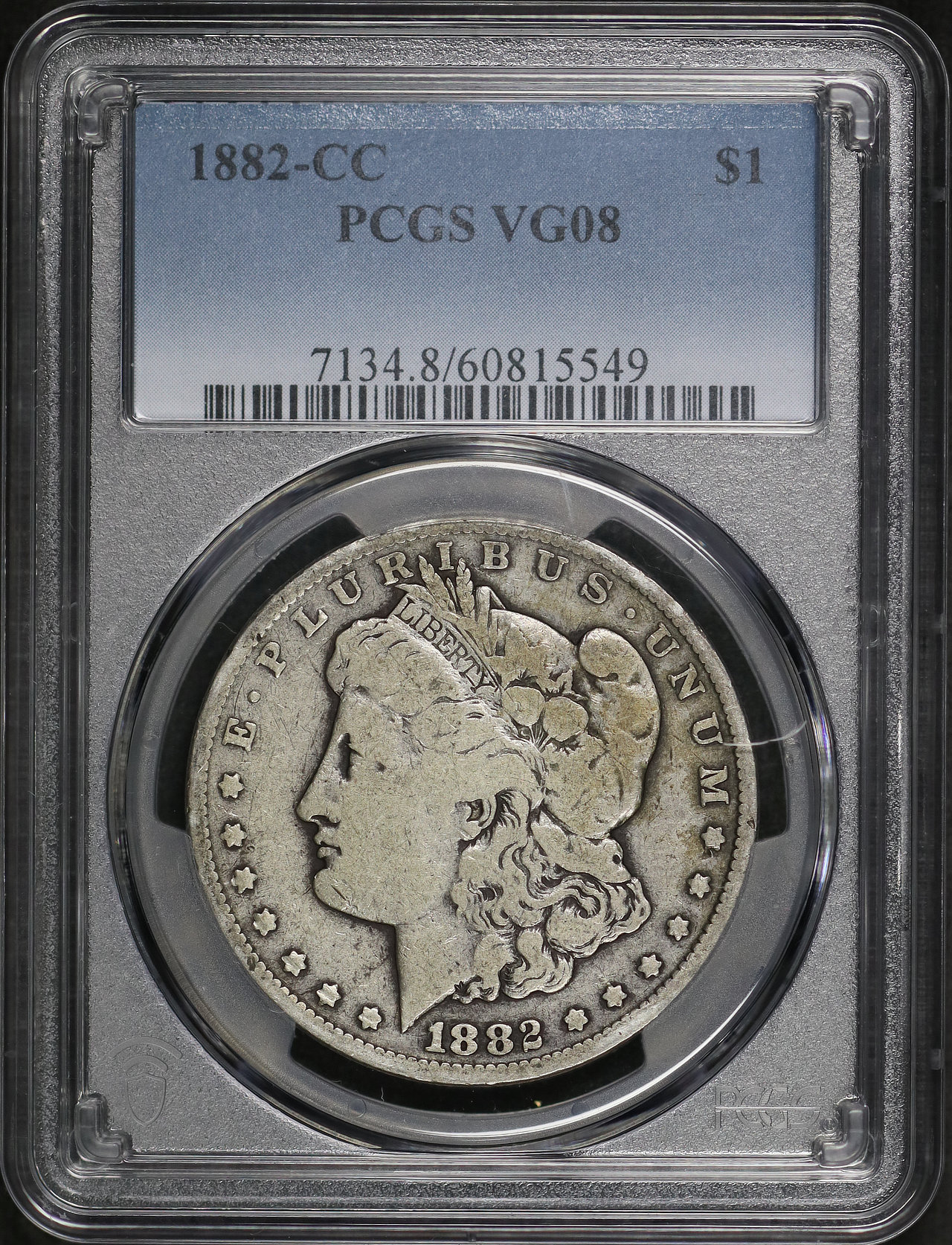 1882-CC Morgan Dollar PCGS VG-08 designed by George T. Morgan.