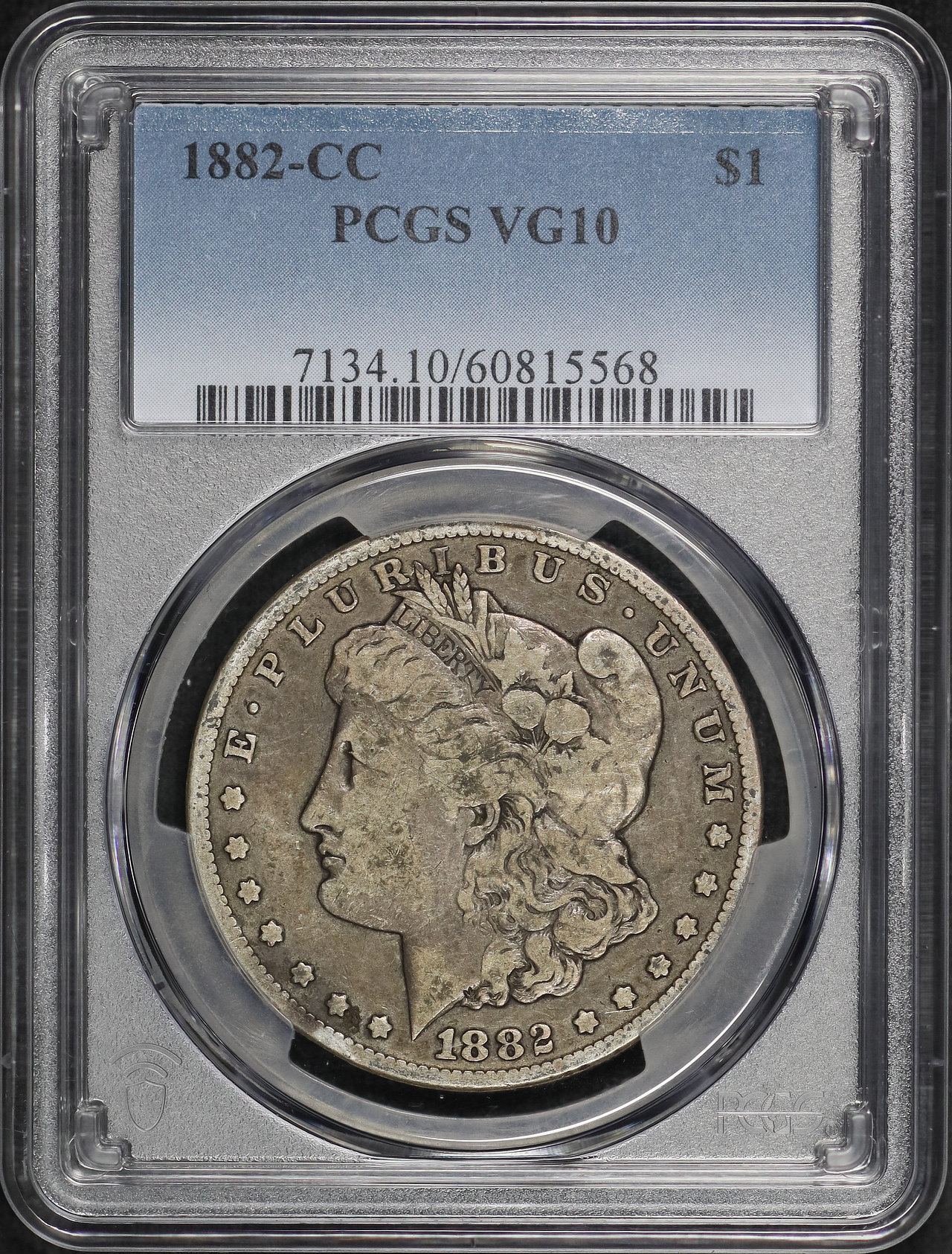 1882-CC Morgan Dollar PCGS VG-10 designed by George T. Morgan.