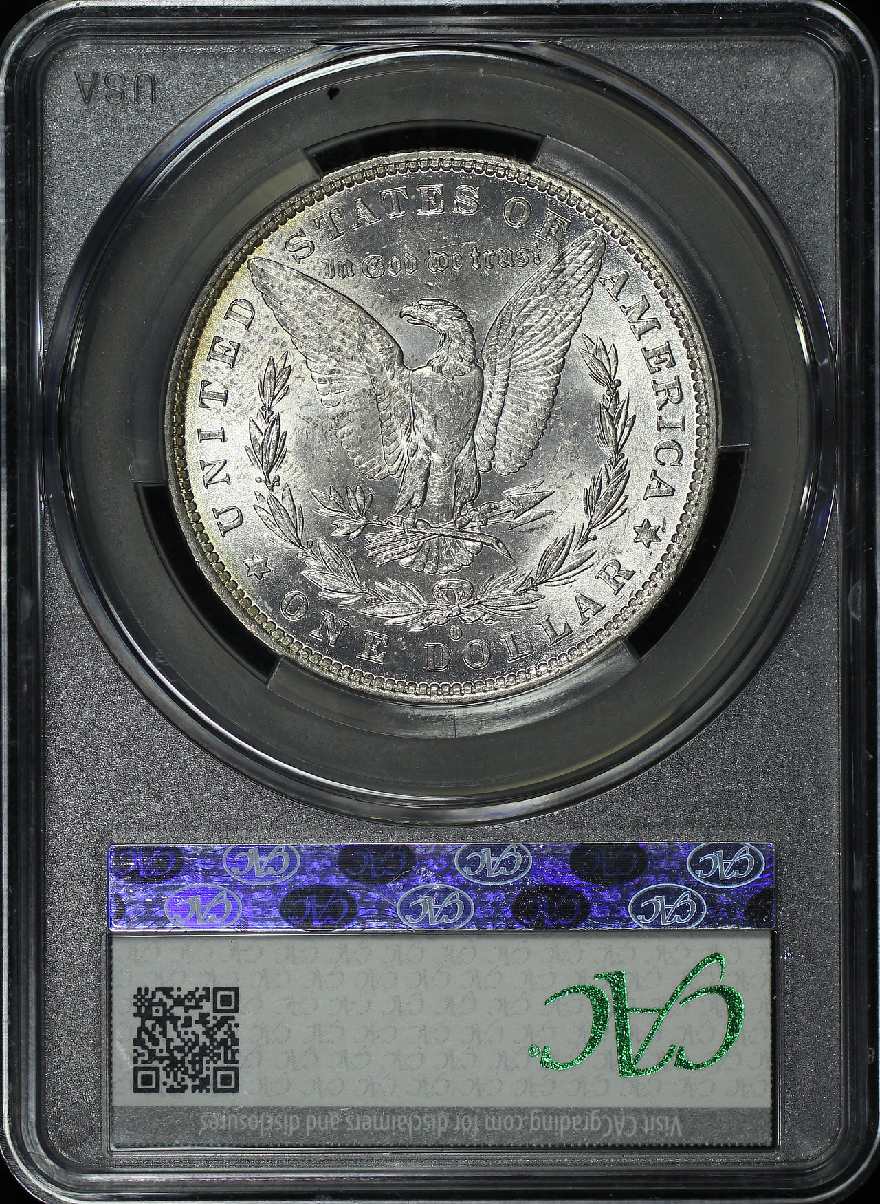 1882-O Morgan Dollar CACG MS-63+ Rainbow Toning.