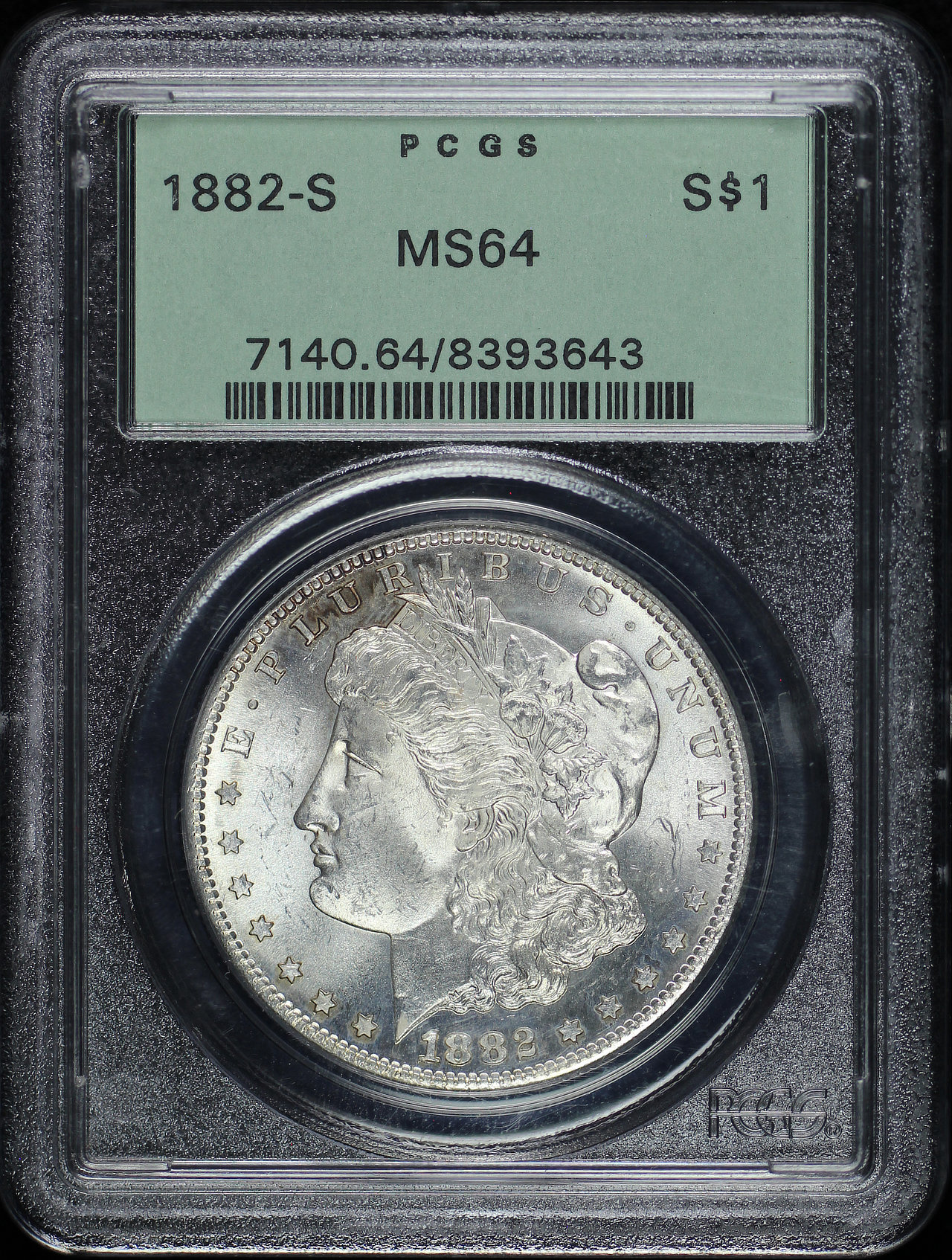 1882-S Morgan Dollar PCGS MS-64 Old Green Holder designed by George T. Morgan.