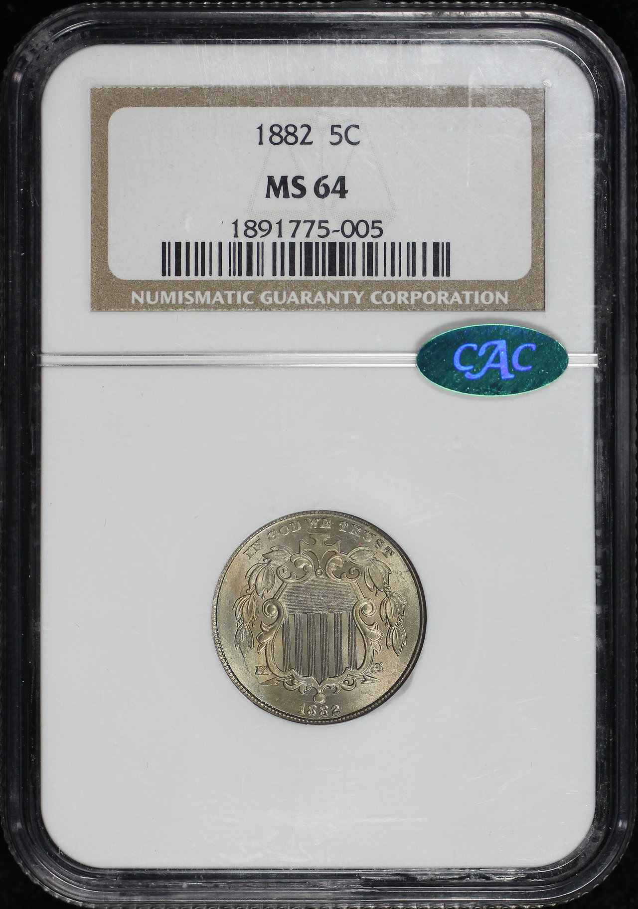 1882 Shield Nickel NGC MS-64 CAC.