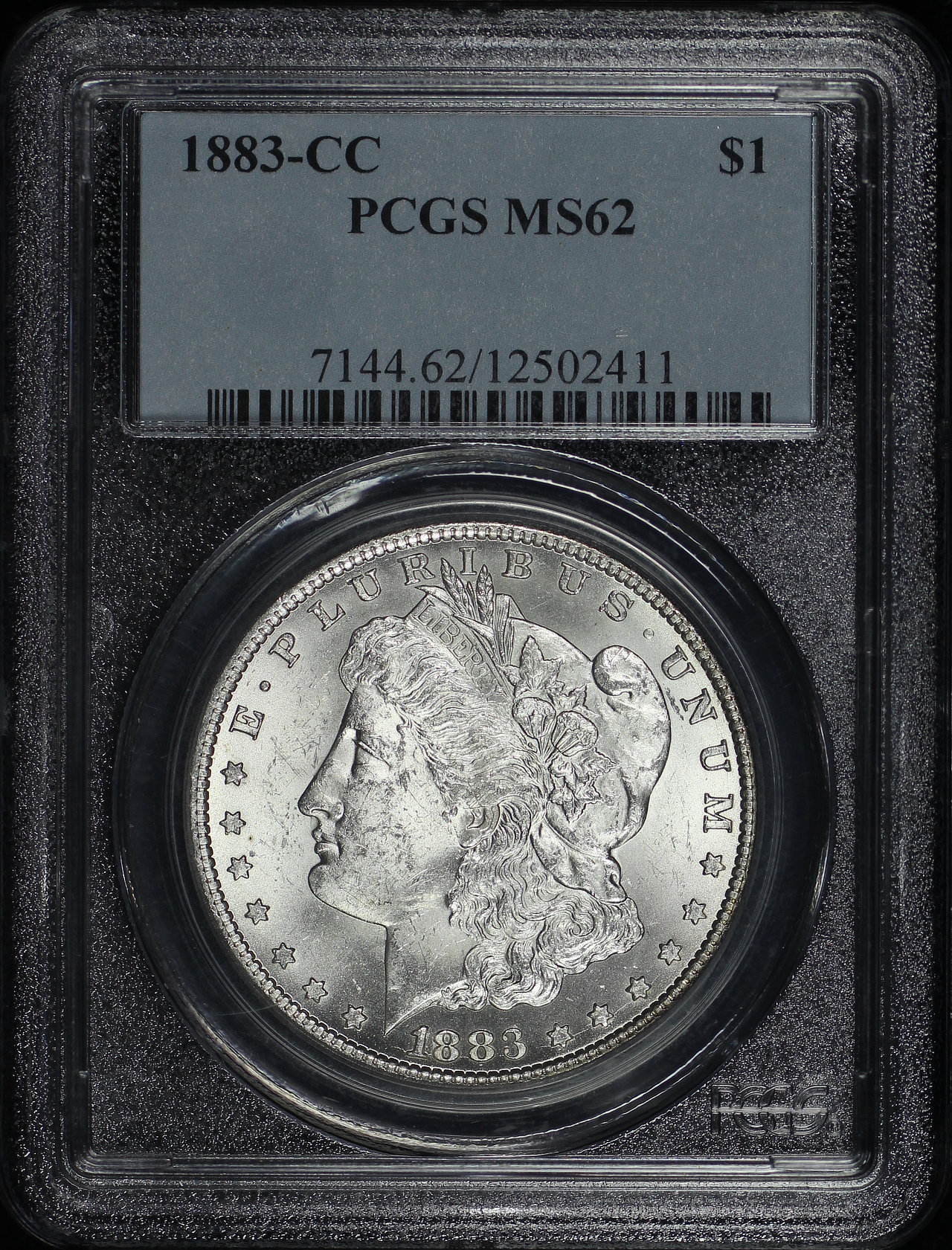 1883-CC Morgan Dollar PCGS MS-62 designed by George T. Morgan.