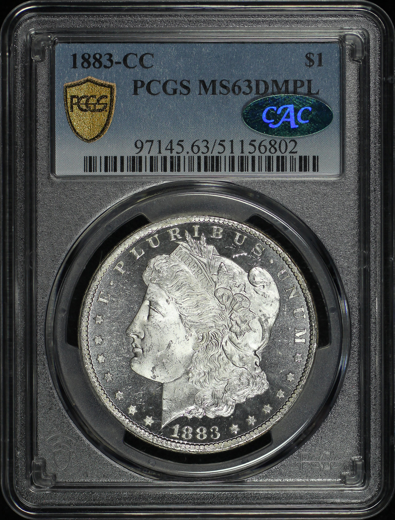 1883-CC Morgan Dollar PCGS MS-63 DMPL CAC designed by George T. Morgan.