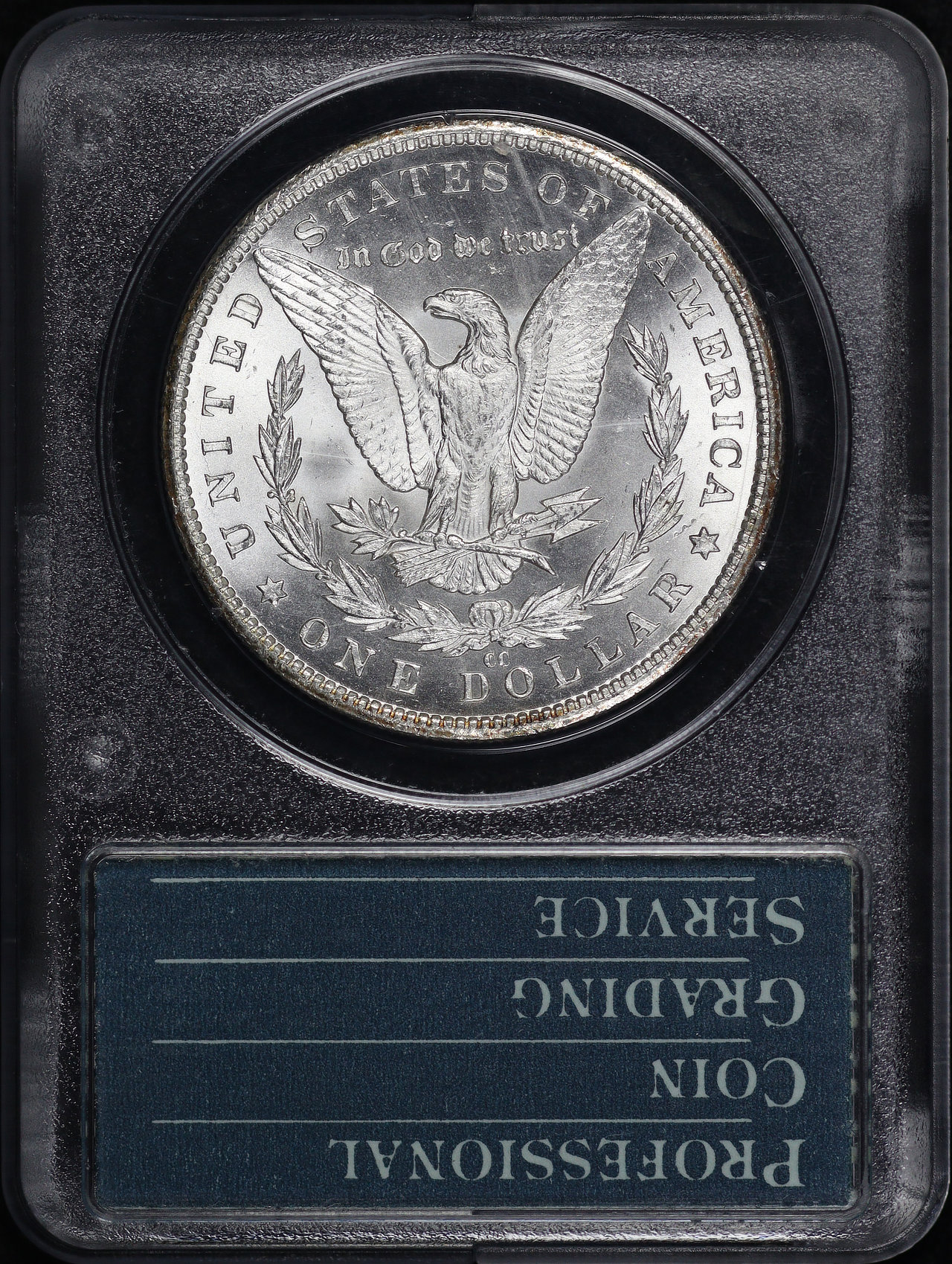 1883-CC Morgan Dollar PCGS MS-64 Old Green Rattler Holder designed by George T. Morgan.