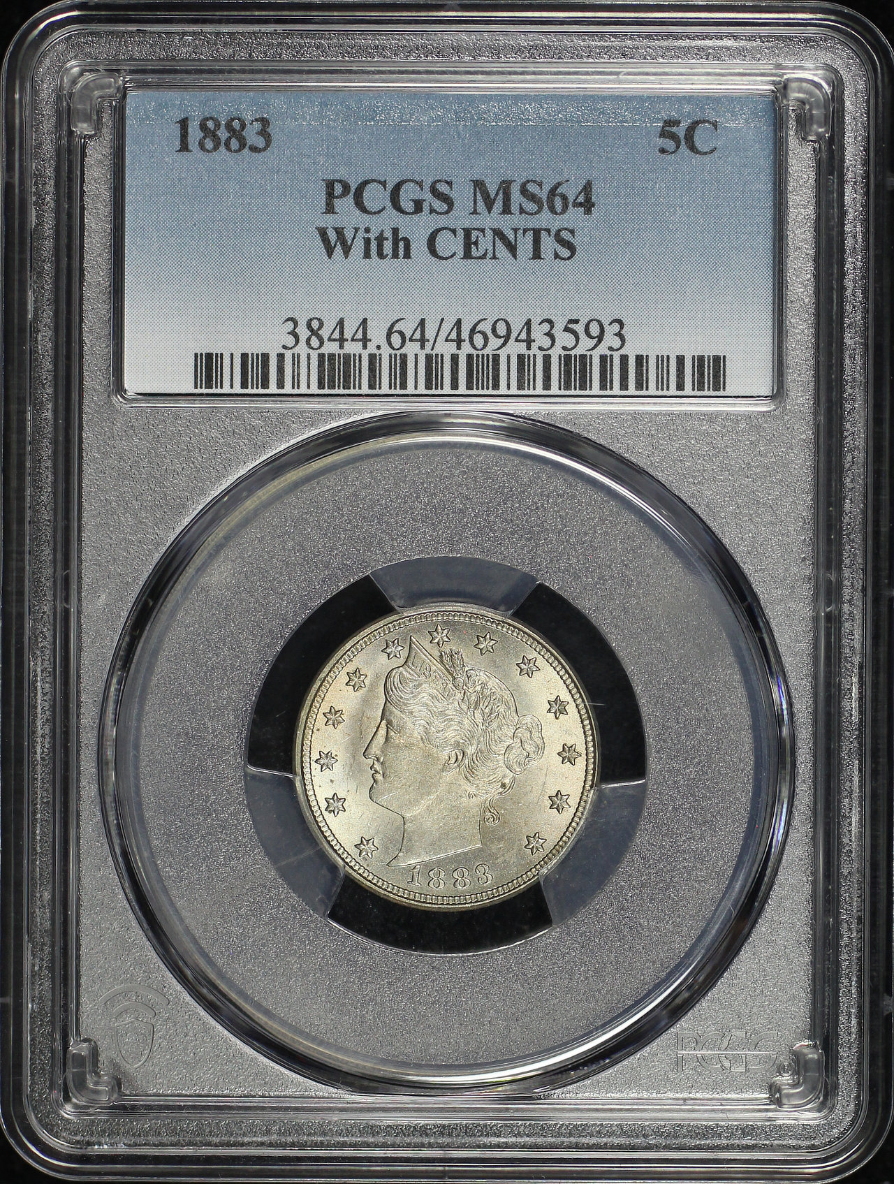 1883 Liberty Nickel With CENTS PCGS MS-64 designed by Charles E. Barber.