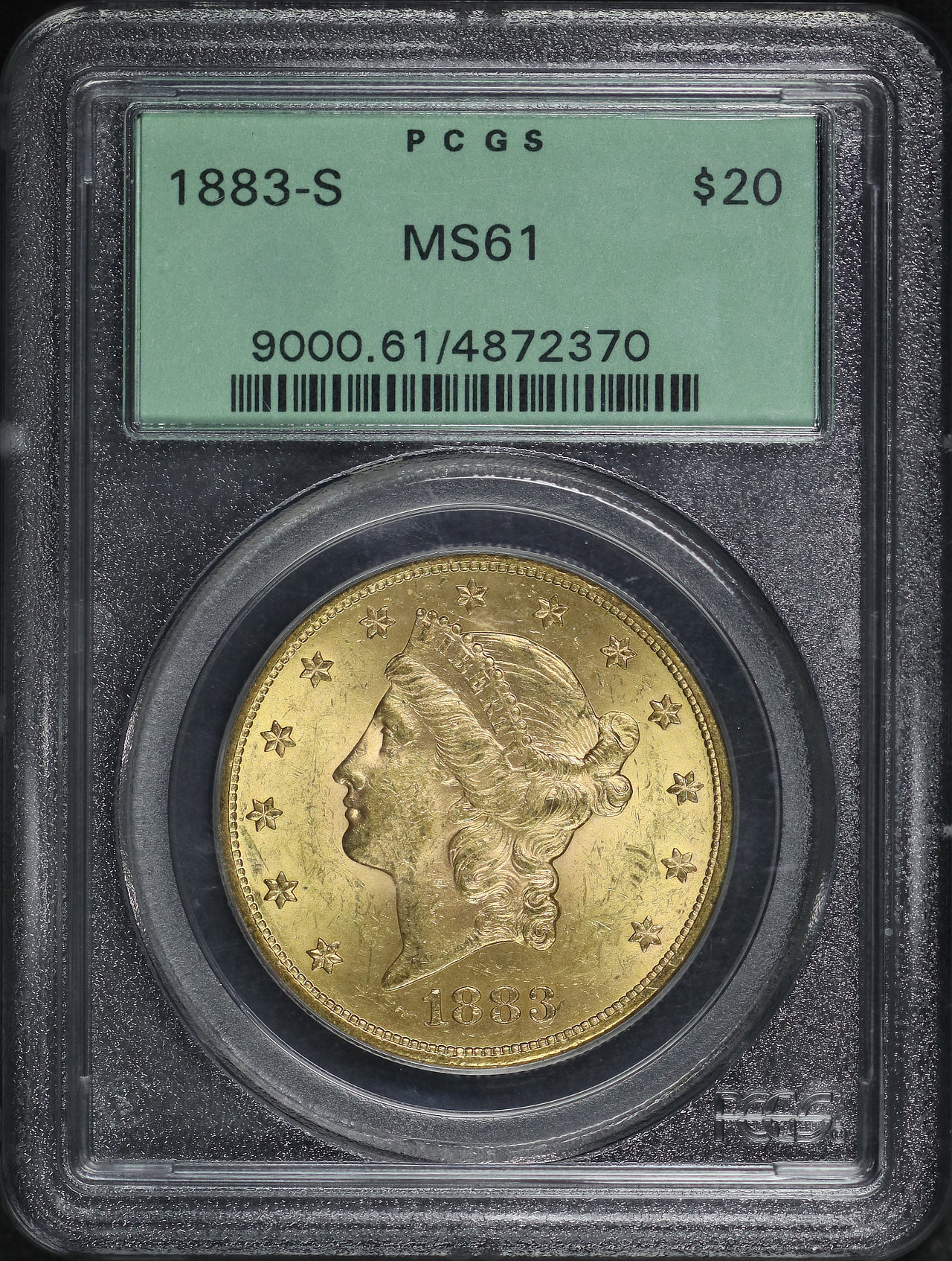 1883-S Liberty Head $20 Type 3 PCGS MS-61 Old Green Holder designed by James Barton Longacre.
