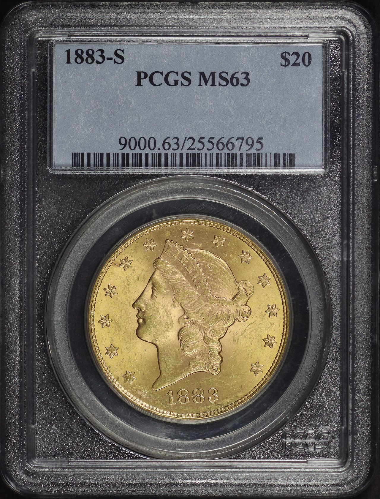 1883-S Liberty Head $20 Type 3 PCGS MS-63 designed by James Barton Longacre.