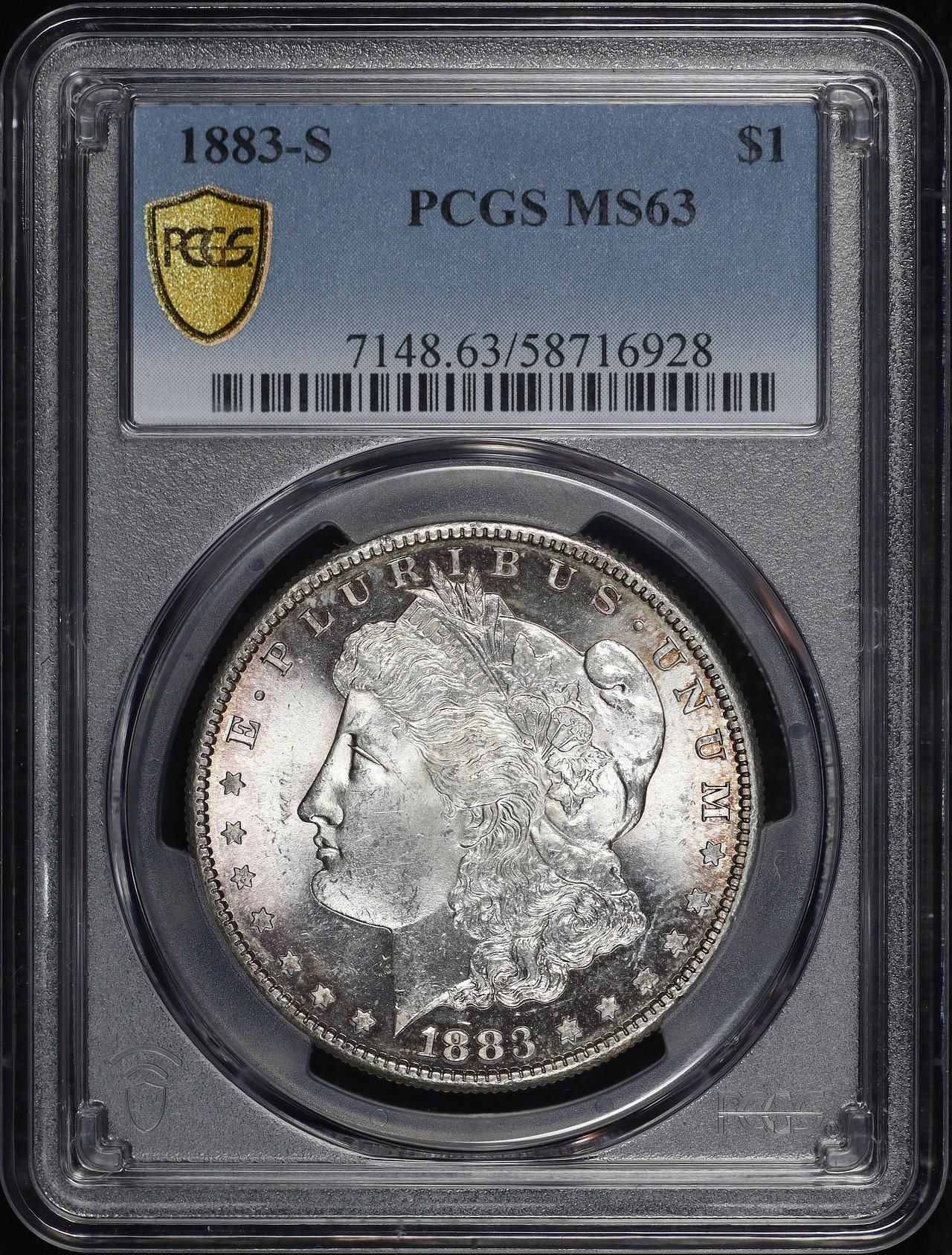 1883-S Morgan Dollar PCGS MS-63 designed by George T. Morgan. Both sides display faint violet hue toning.