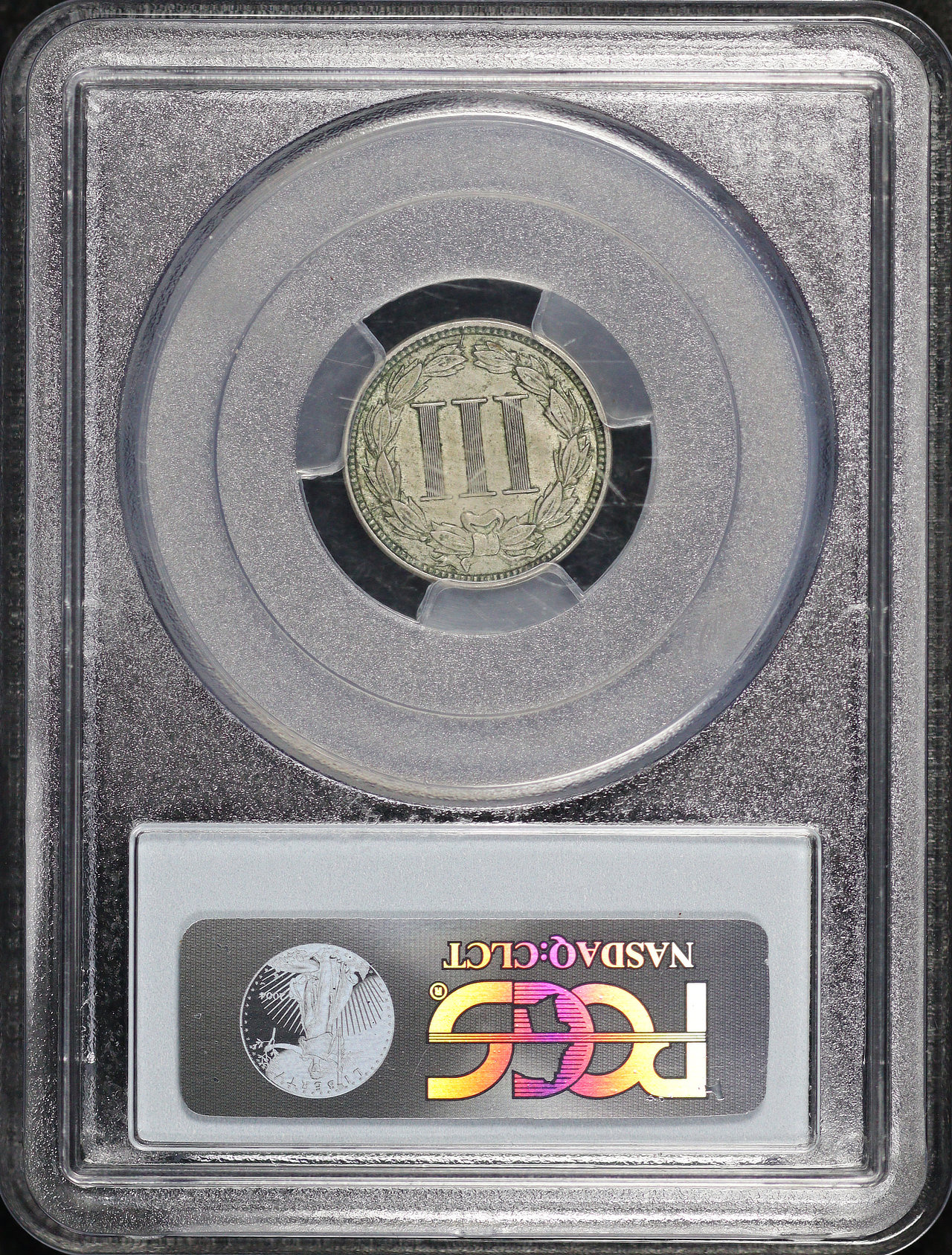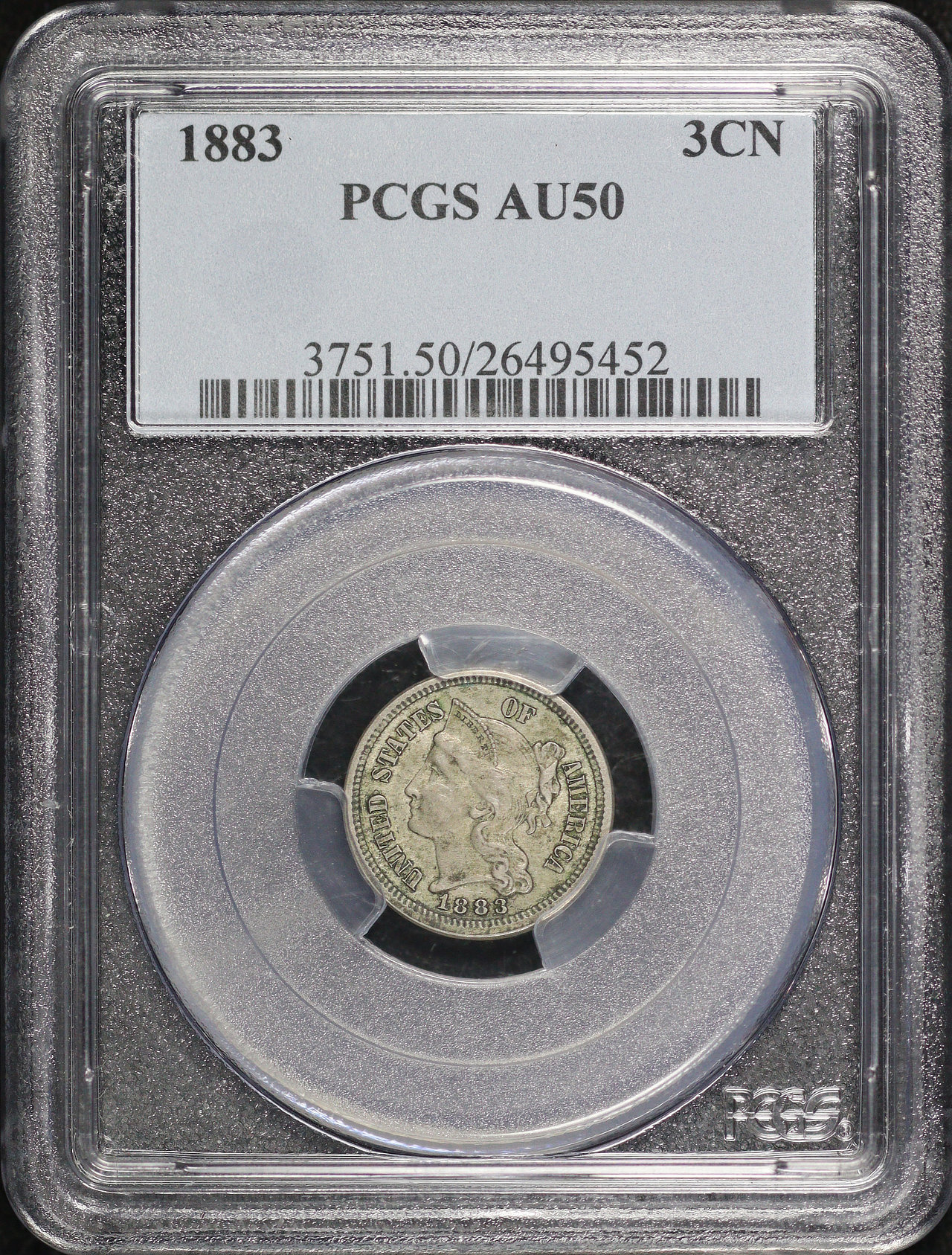 1883 Three Cent Nickel PCGS AU-50 designed by James Barton Longacre.