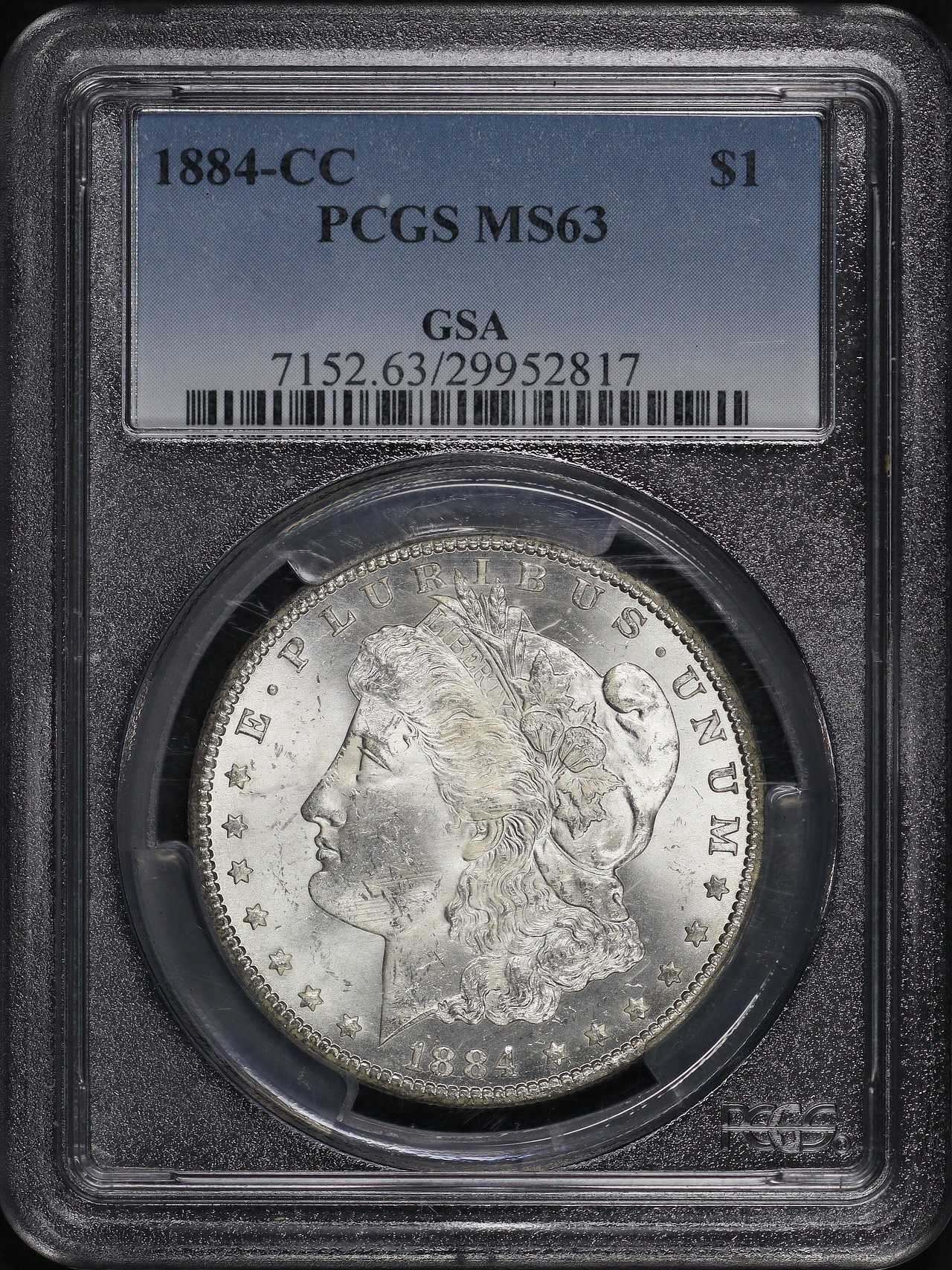 1884-CC Morgan Dollar GSA PCGS MS-63 designed by George T. Morgan.
