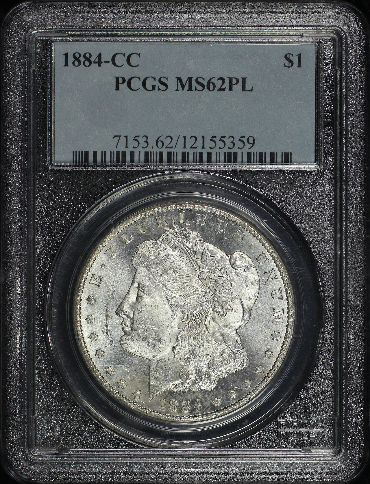 1884-CC Morgan Dollar PCGS MS-62 PL designed by George T. Morgan.