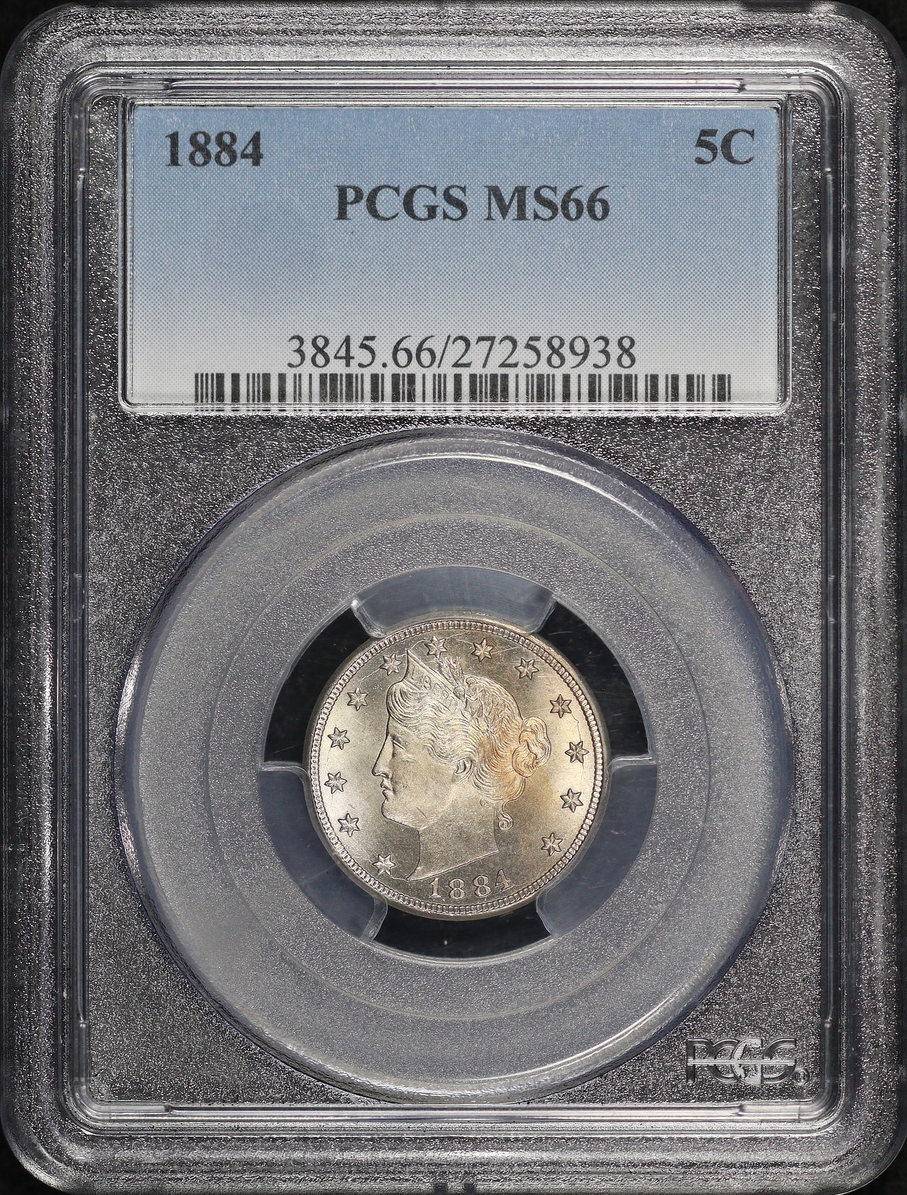 1884 Liberty Nickel PCGS MS-66 designed by Charles E. Barber.