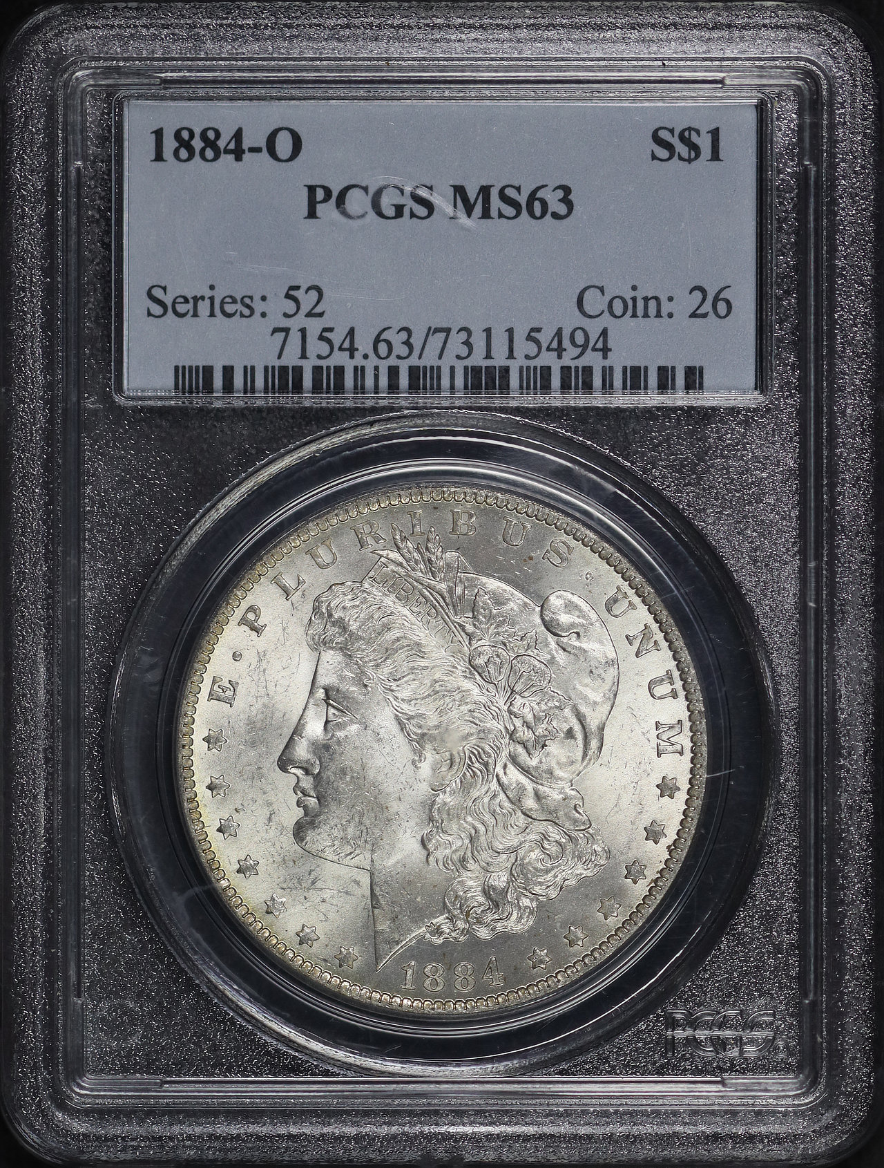 1884-O Morgan Dollar PCGS MS-63 designed by George T. Morgan.