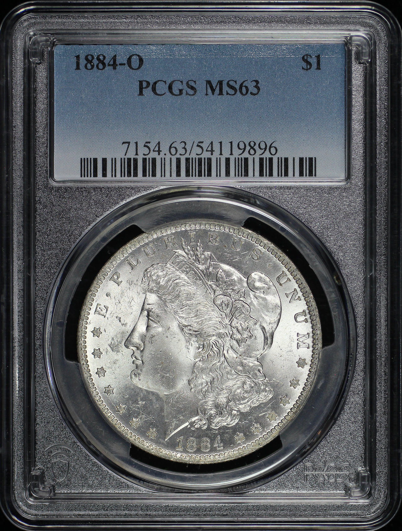 1884-O Morgan Dollar PCGS MS-63 designed by George T. Morgan.