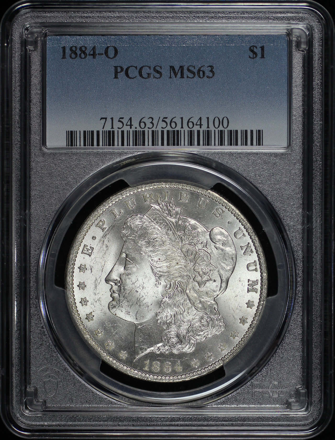 1884-O Morgan Dollar PCGS MS-63 designed by George T. Morgan.