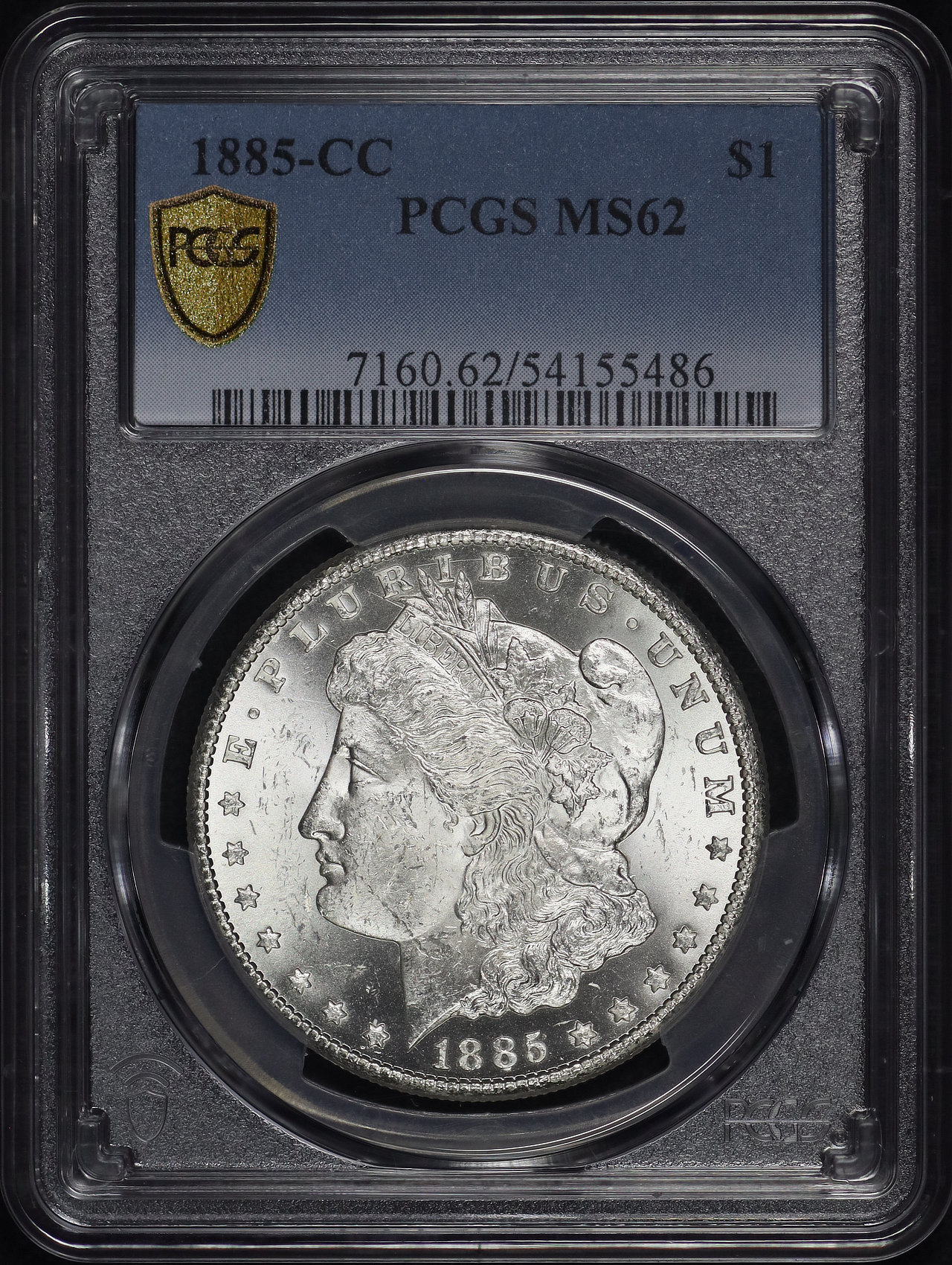 1885-CC Morgan Dollar PCGS MS-62 designed by George T. Morgan.