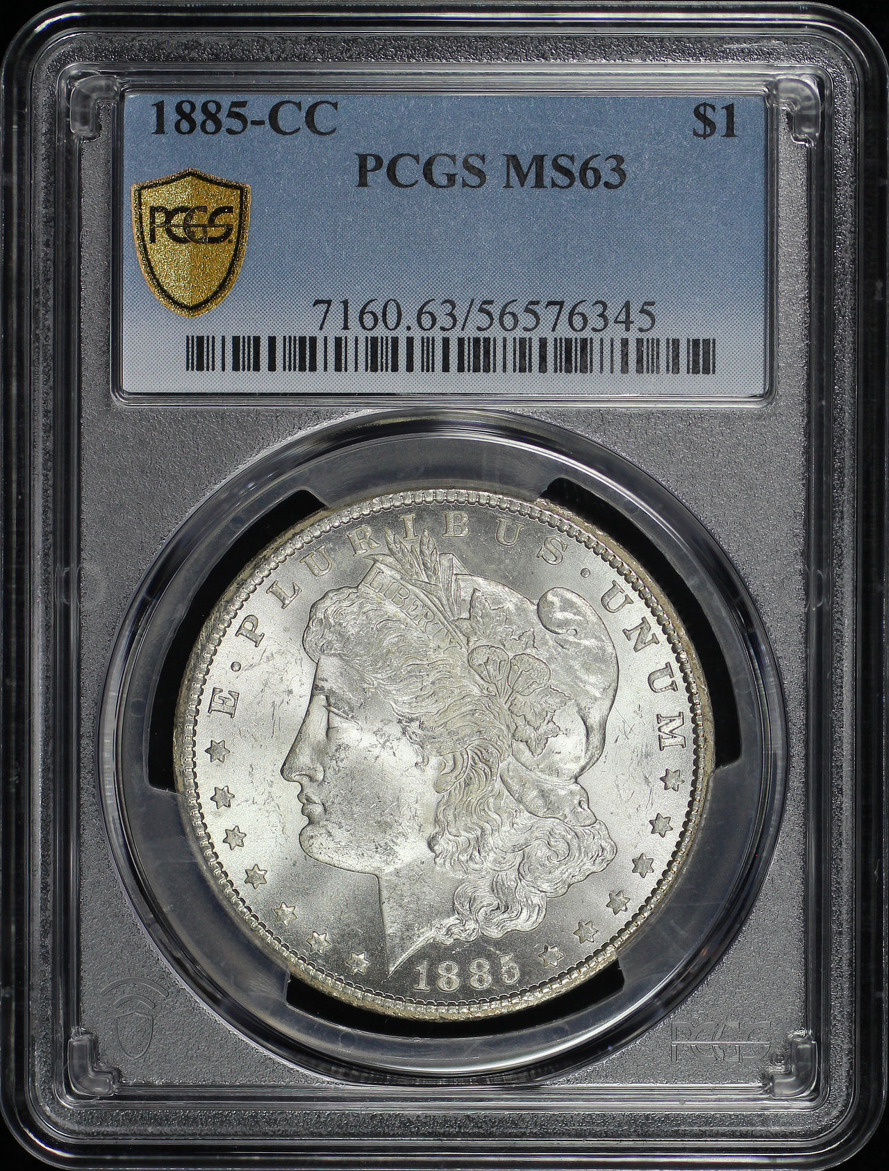 1885-CC Morgan Dollar PCGS MS-63 designed by George T. Morgan.