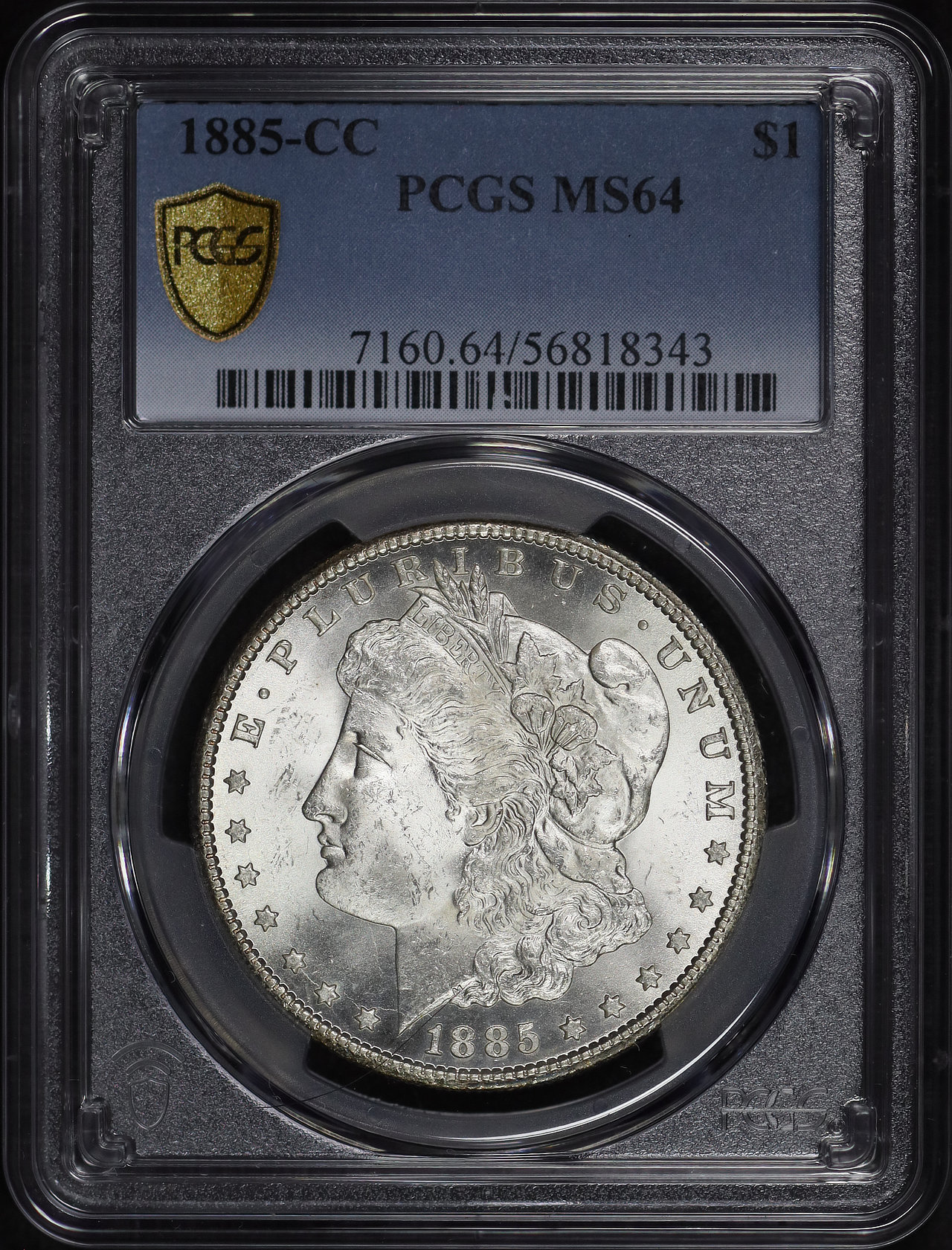 1885-CC Morgan Dollar PCGS MS-64 designed by George T. Morgan.