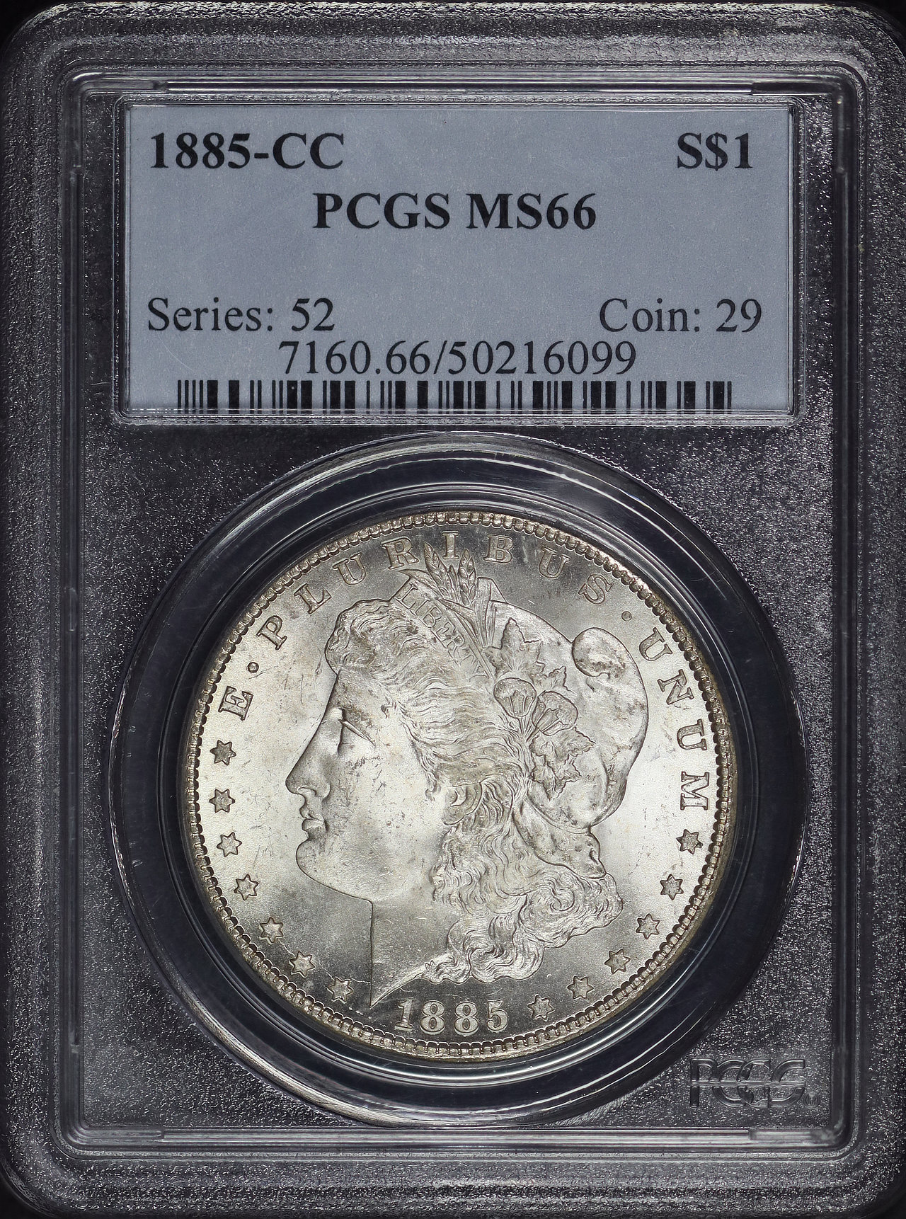 1885-CC Morgan Dollar PCGS MS-66 designed by George T. Morgan.