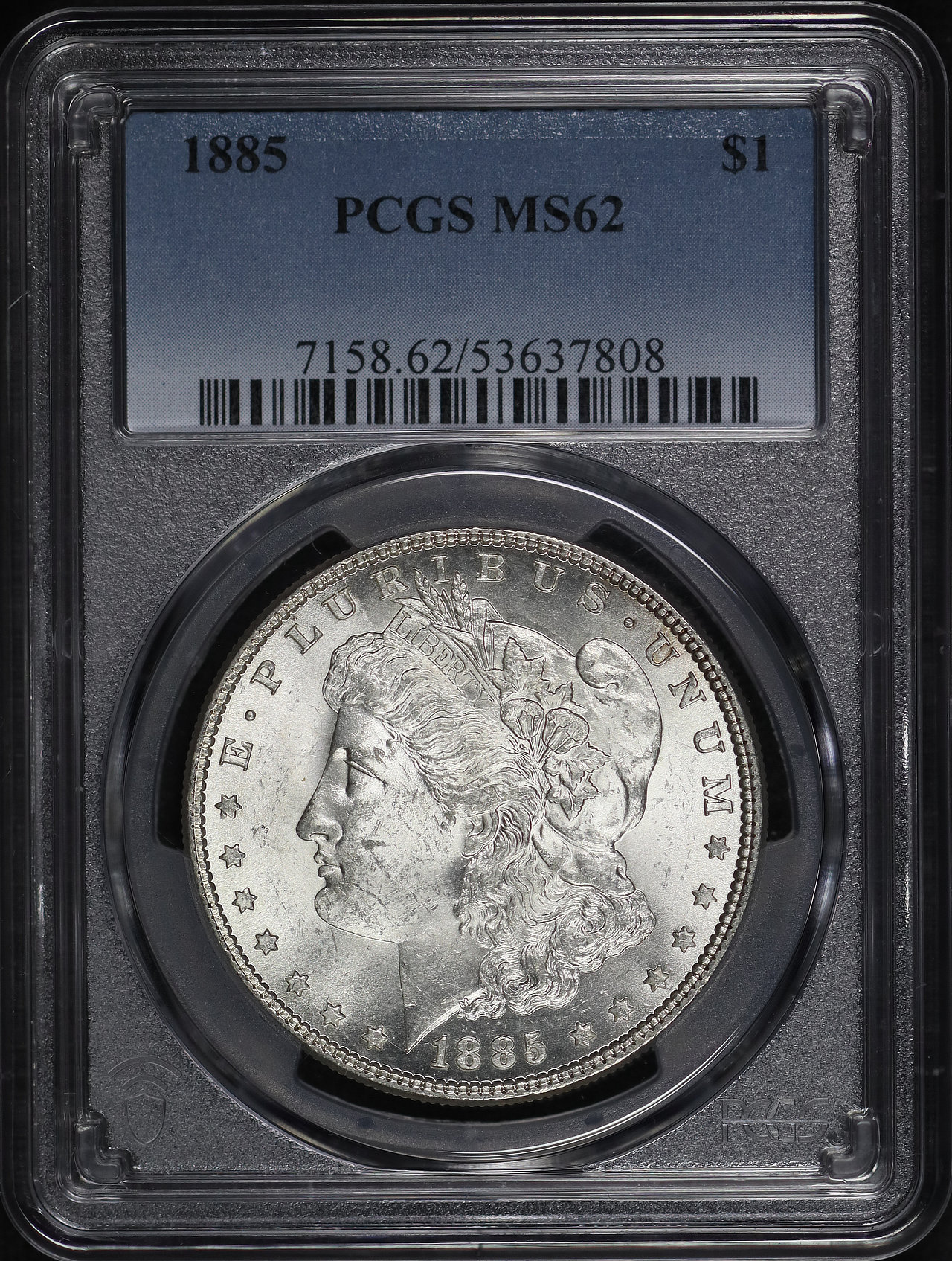 1885 Morgan Dollar PCGS MS-62 designed by George T. Morgan.