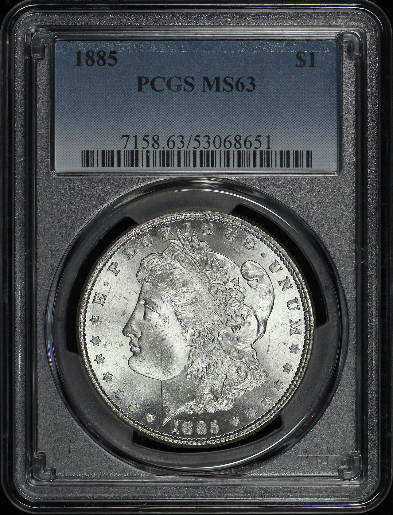 1885 Morgan Dollar PCGS MS-63 designed by George T. Morgan.
