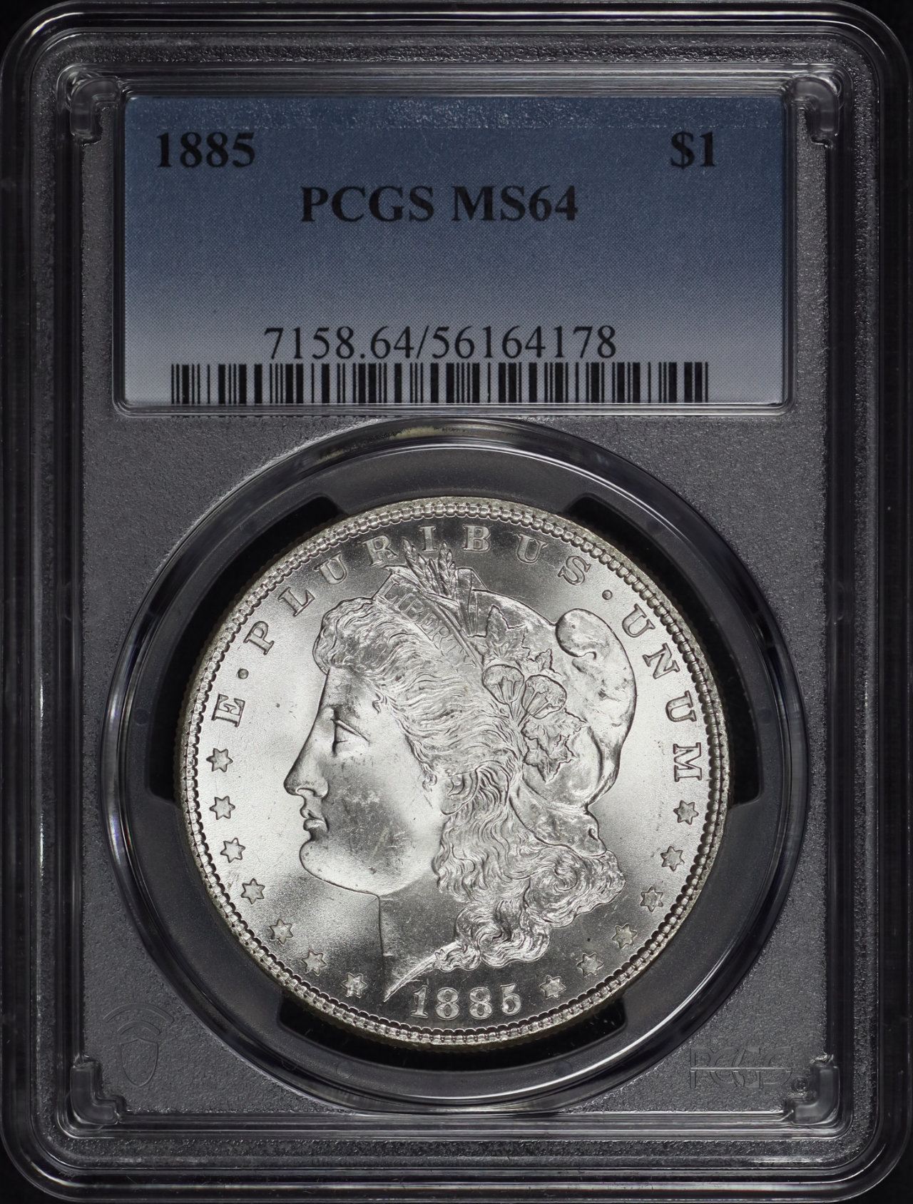 1885 Morgan Dollar PCGS MS-64 designed by George T. Morgan.