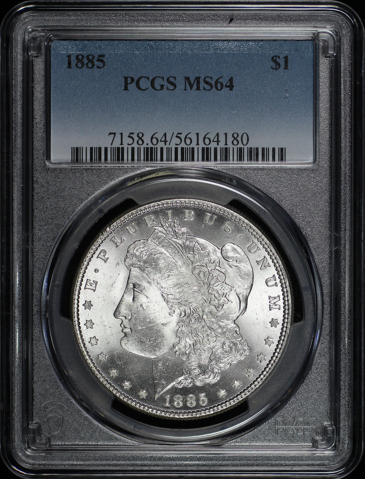 1885 Morgan Dollar PCGS MS-64 designed by George T. Morgan.