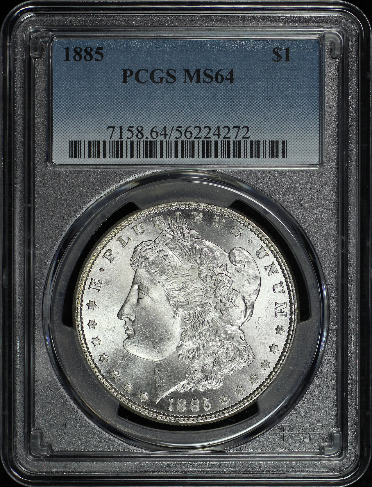 1885 Morgan Dollar PCGS MS-64 designed by George T. Morgan.