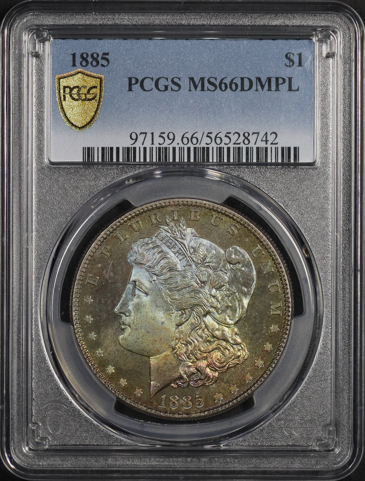 1885 Morgan Dollar PCGS MS-66 DMPL Rainbow Toning