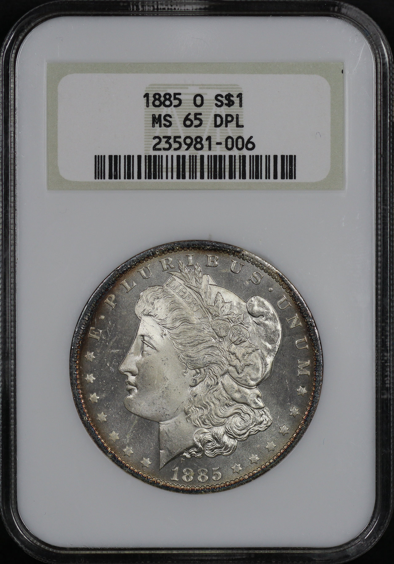 1885-O Morgan Dollar NGC MS-65 DPL Old Fatty Holder.