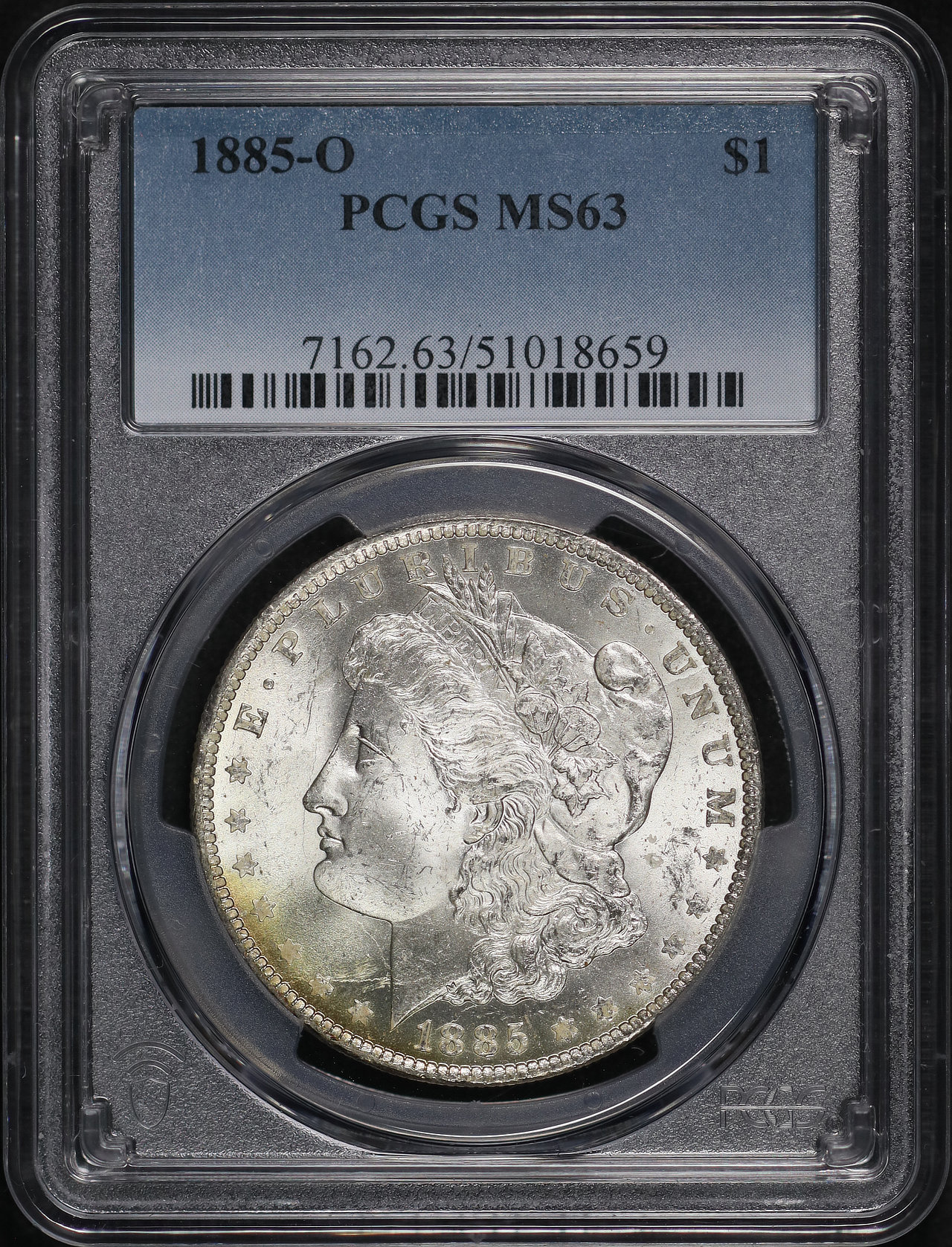 1885-O Morgan Dollar PCGS MS-63 designed by George T. Morgan.