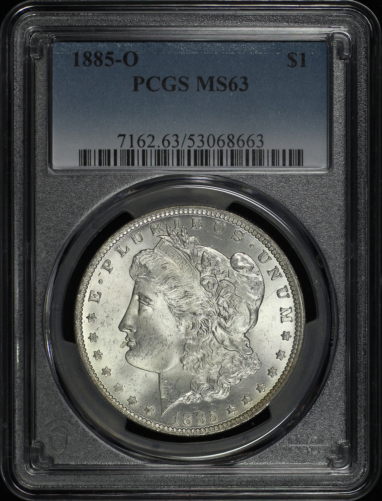 1885-O Morgan Dollar PCGS MS-63 designed by George T. Morgan.