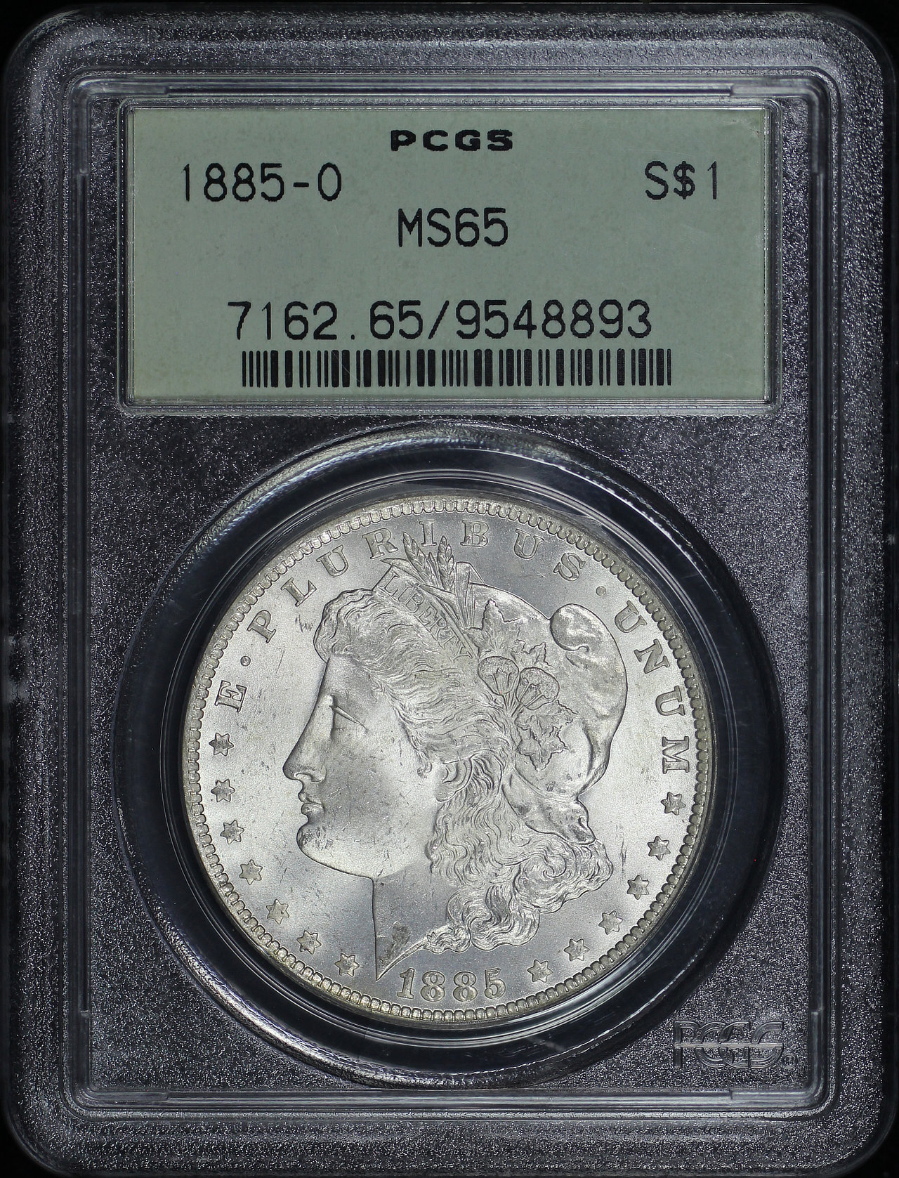 1885-O Morgan Dollar PCGS MS-65 Old Green Holder designed by George T. Morgan.