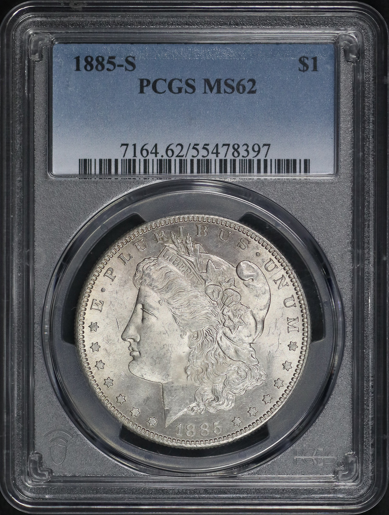 1885-S Morgan Dollar PCGS MS-62 designed by George T. Morgan.