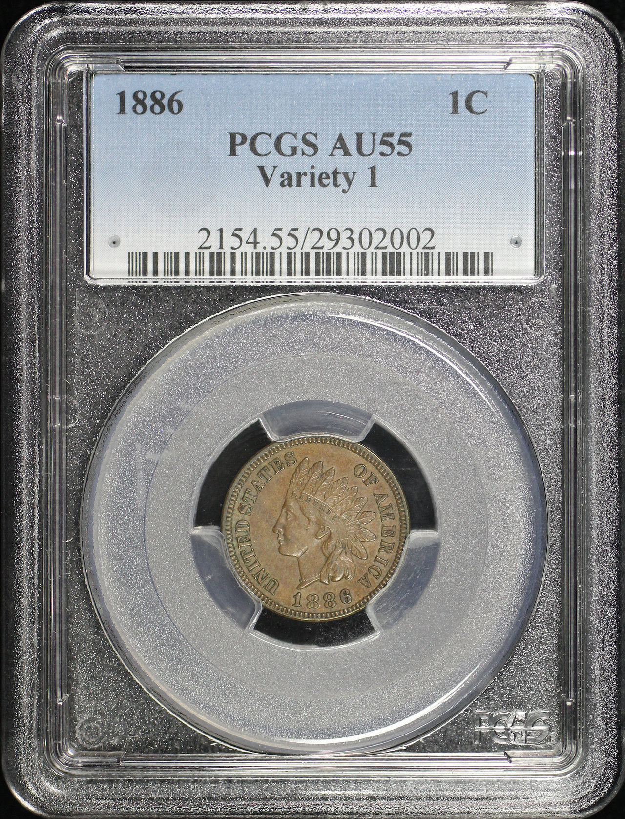 1886 Indian Cent Type 1 PCGS AU-55 BN designed by James Barton Longacre.