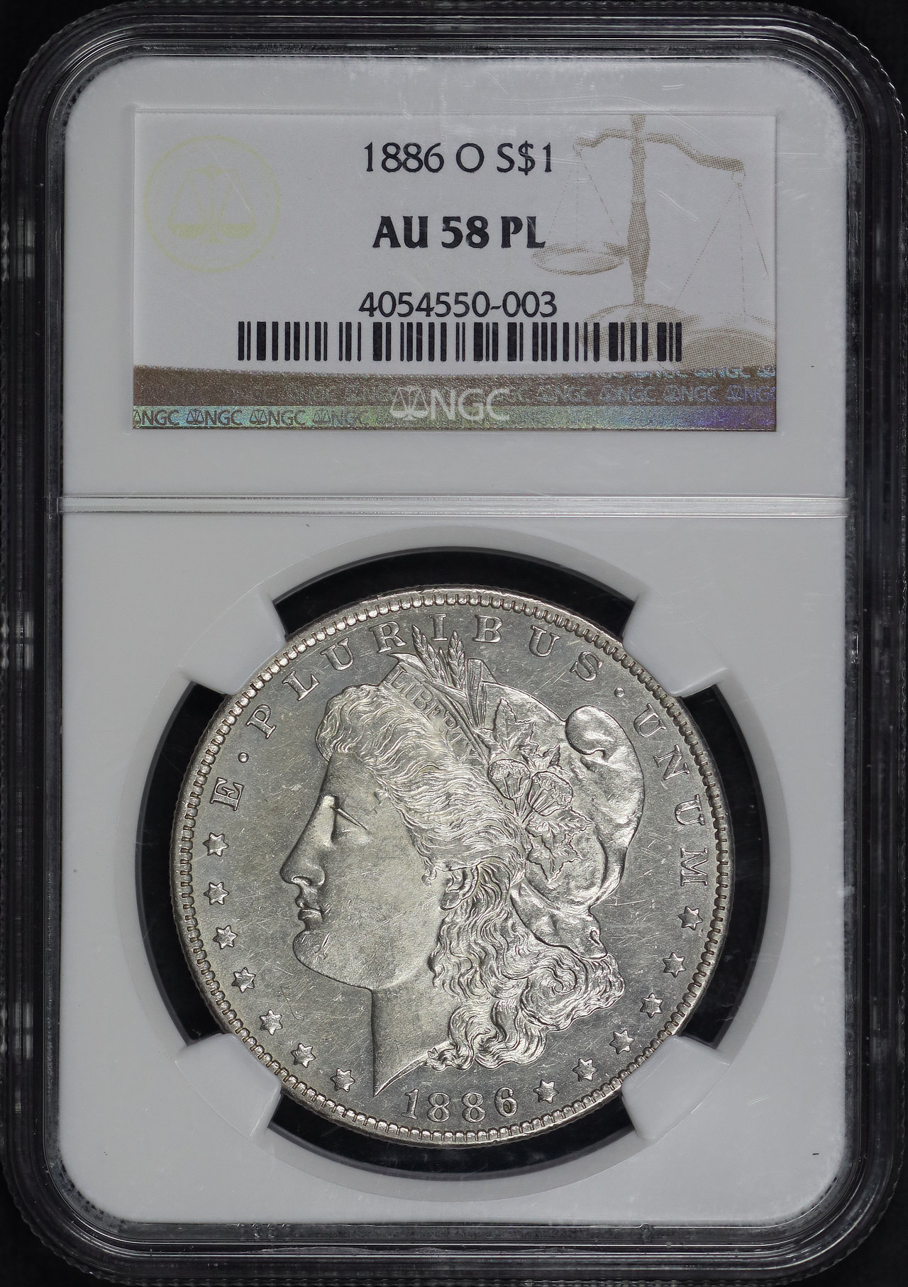 1886-O Morgan Dollar NGC AU-58 PL.